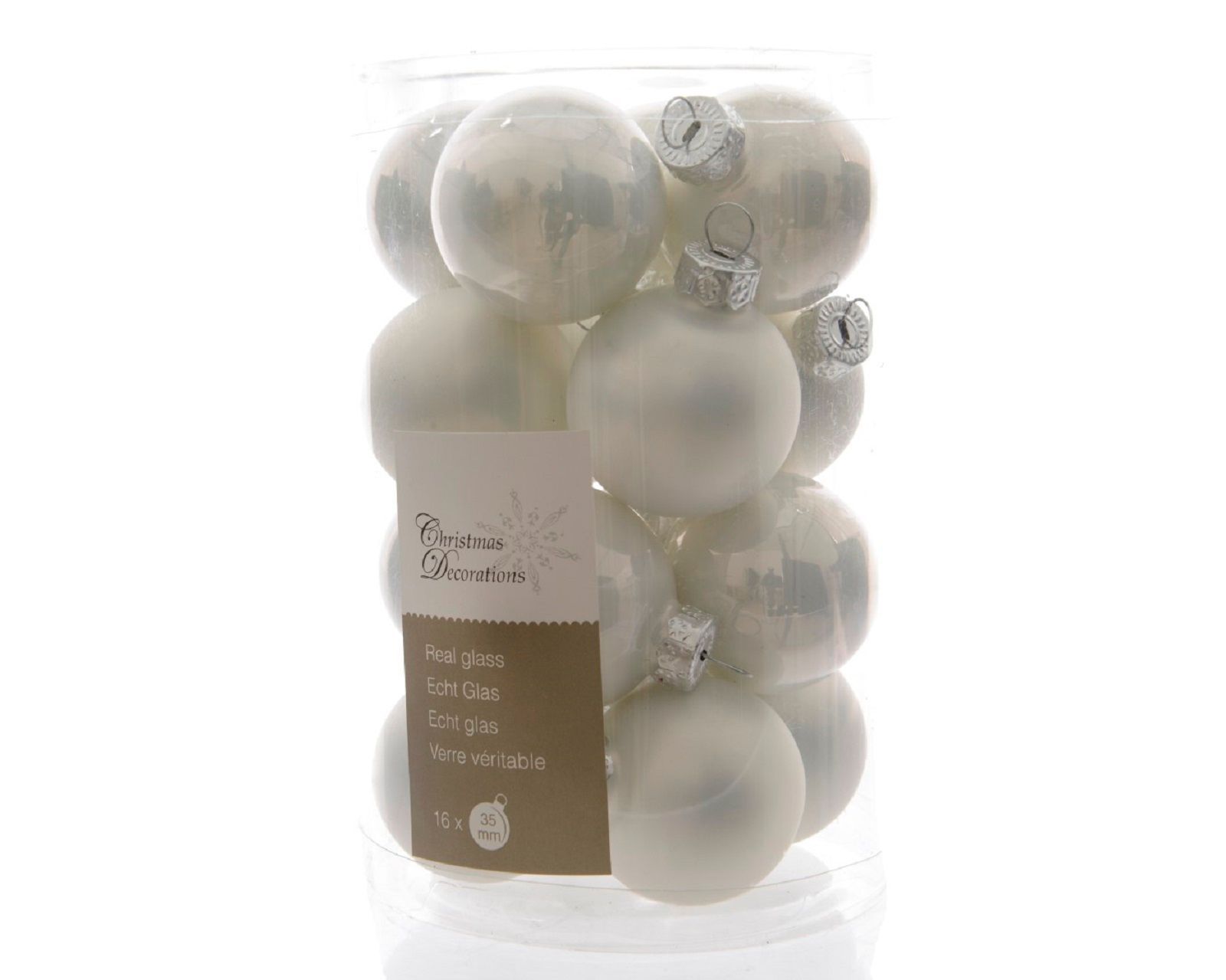 Weihnachtsbaumkugeln Glas Ø 3,5 cm 16 Stück weiß glanz/matt mix