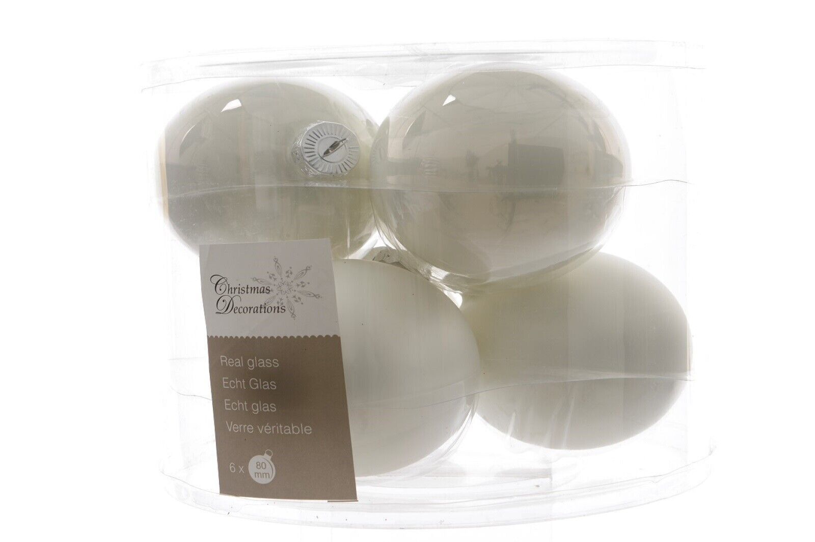 Weihnachtsbaumkugeln Glas Ø 8 cm 6 Stück winterweiß emaille/matt