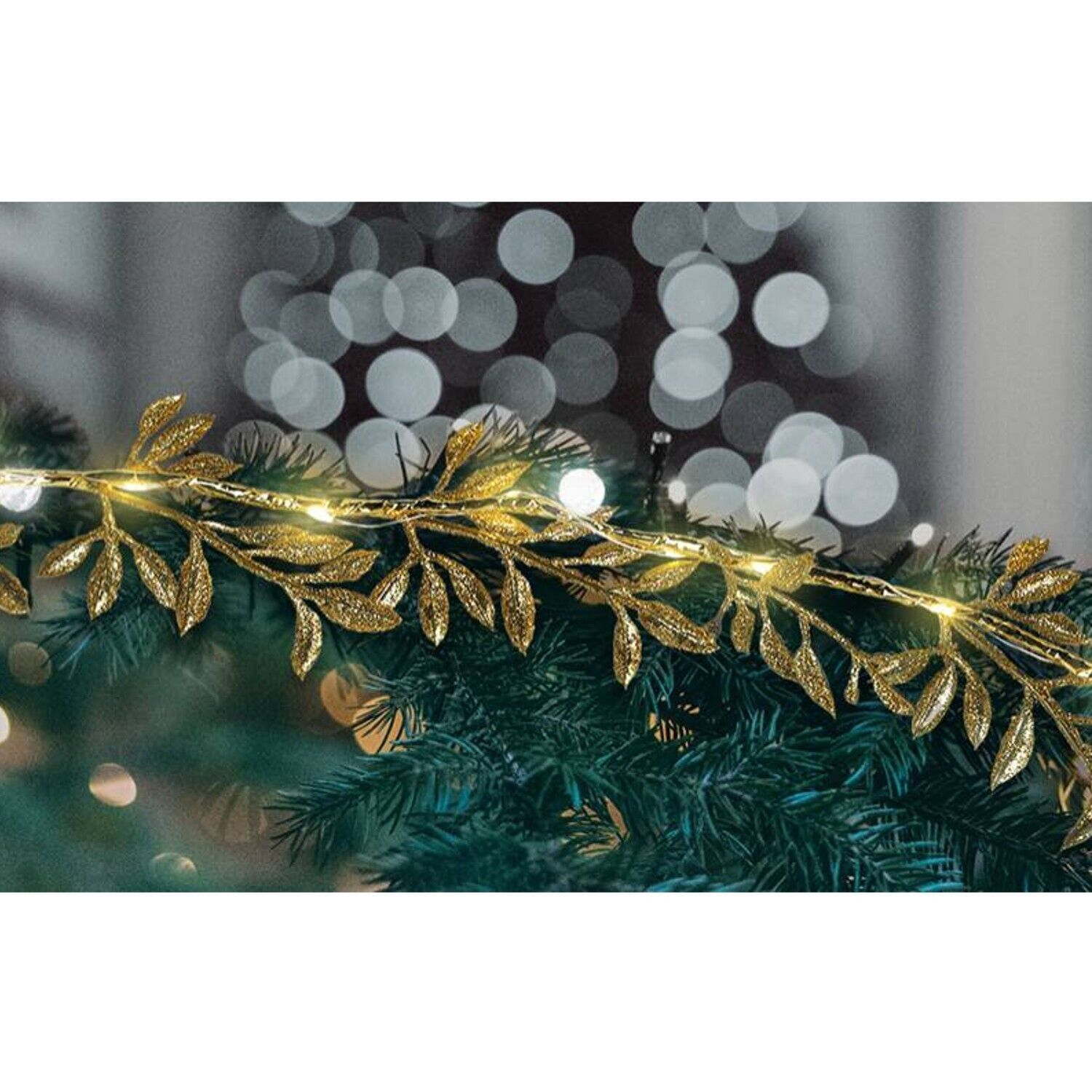 Weihnachtsbeleuchtung Beleuchtung Lichterkette Gold Blätter Warmweiß 1,8m