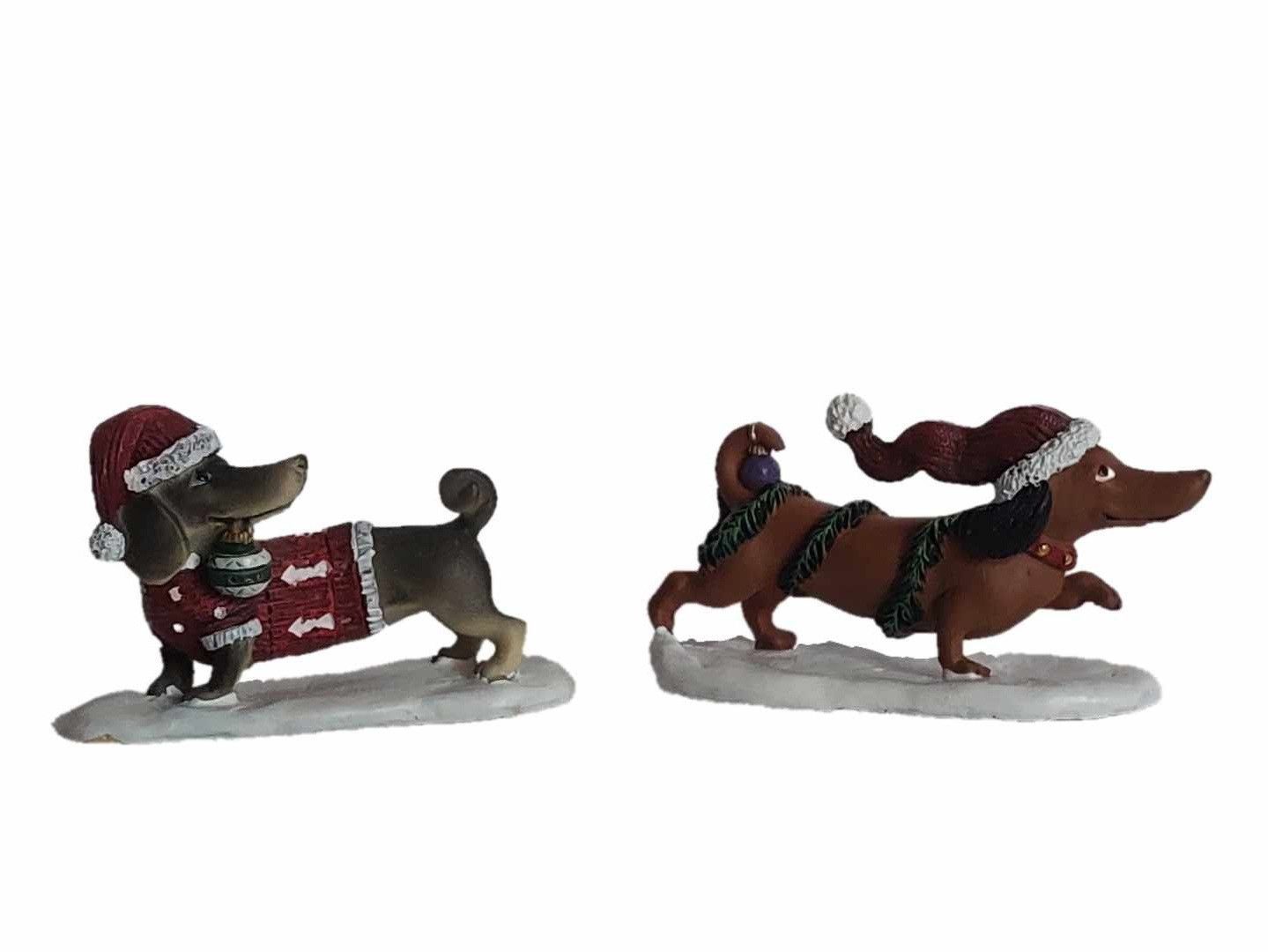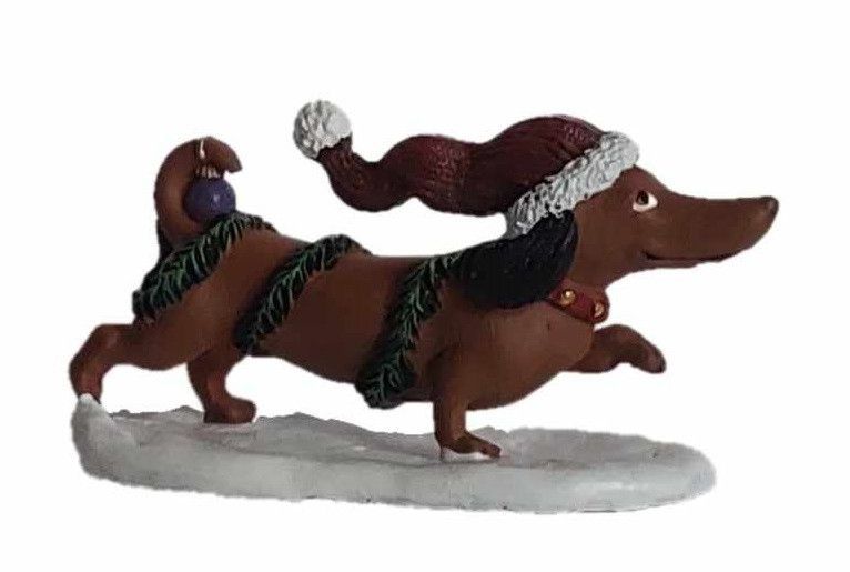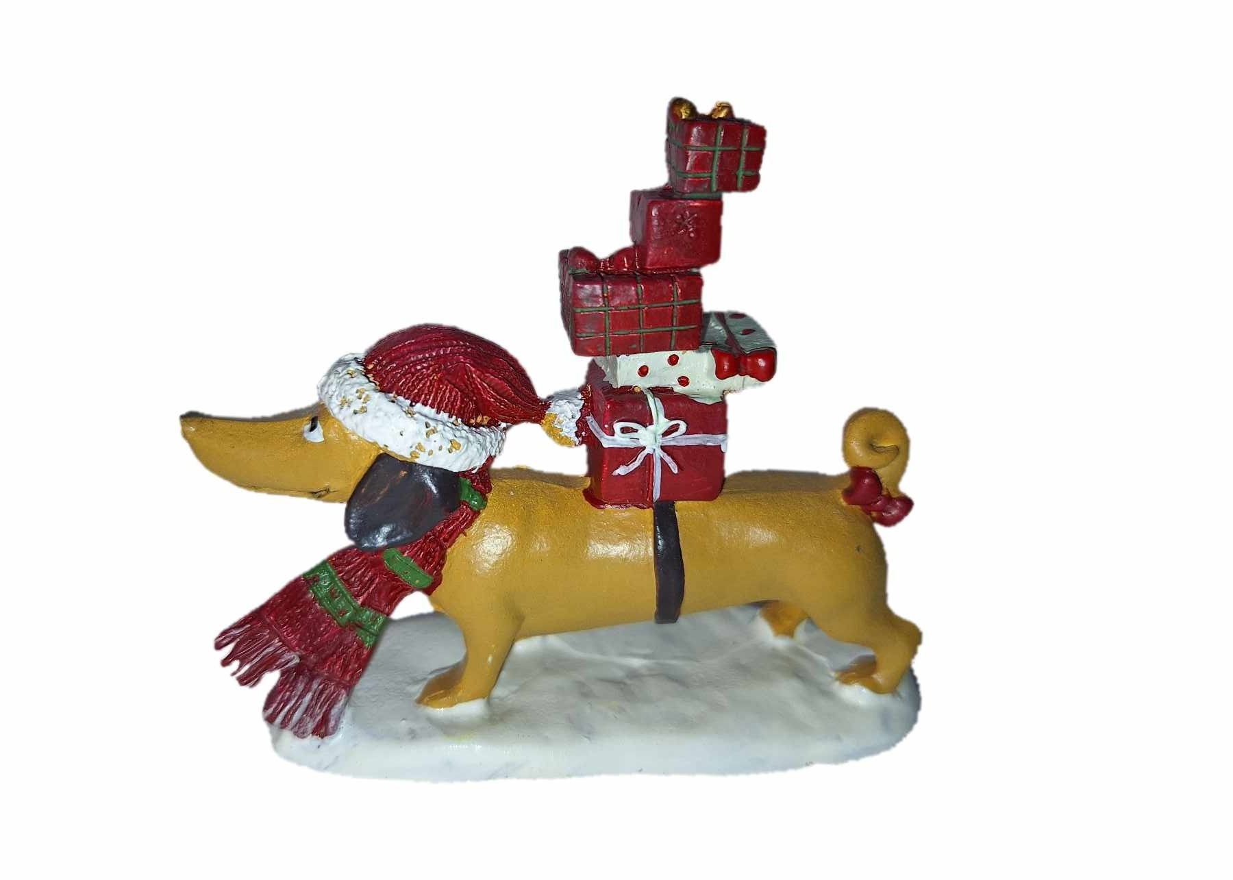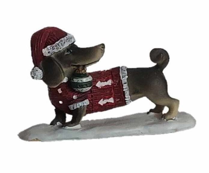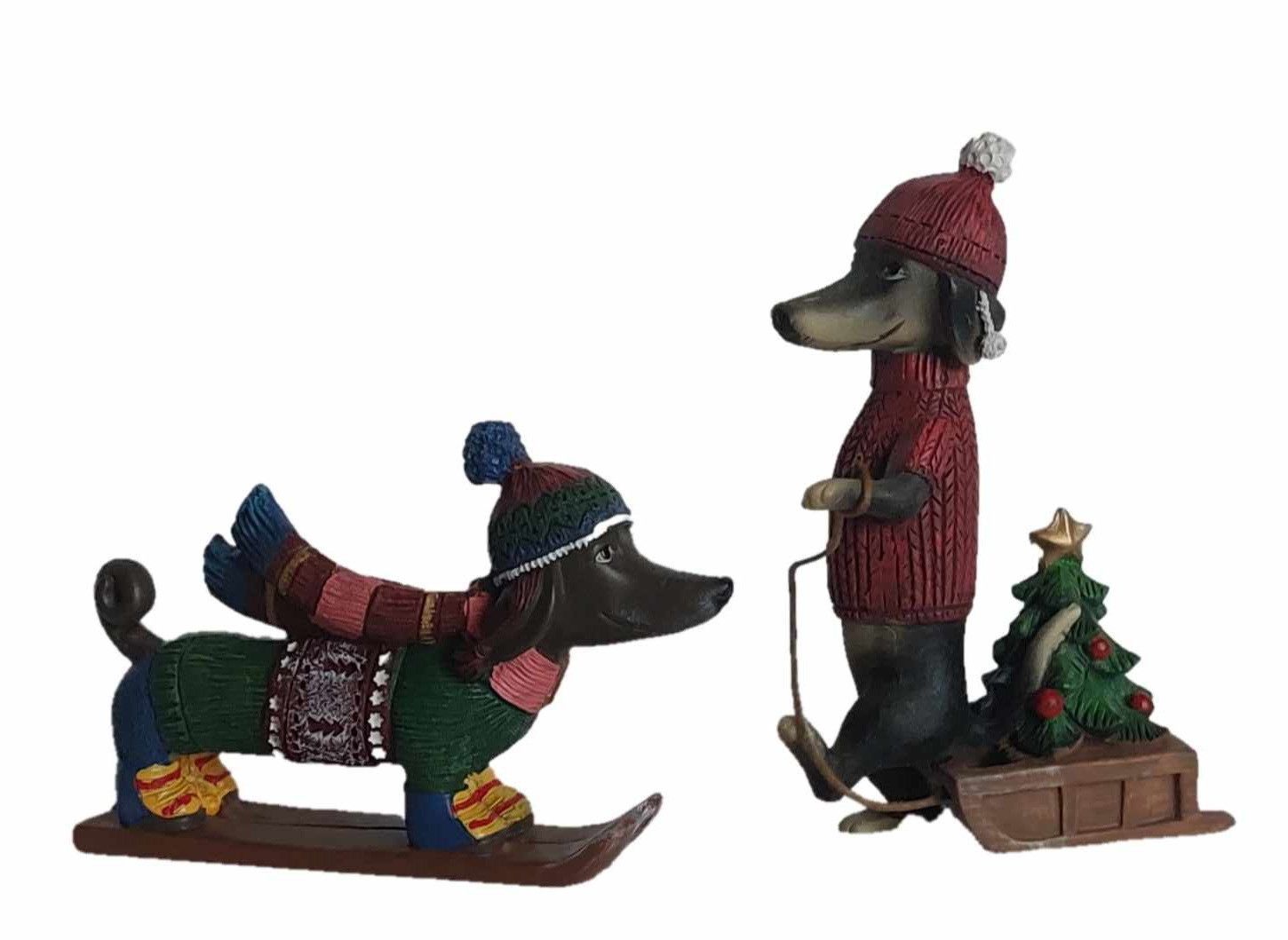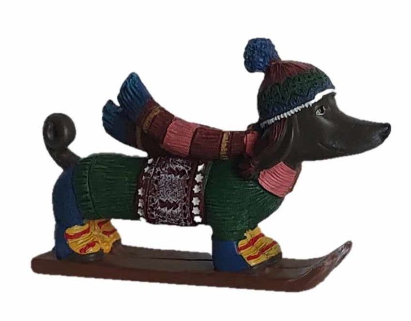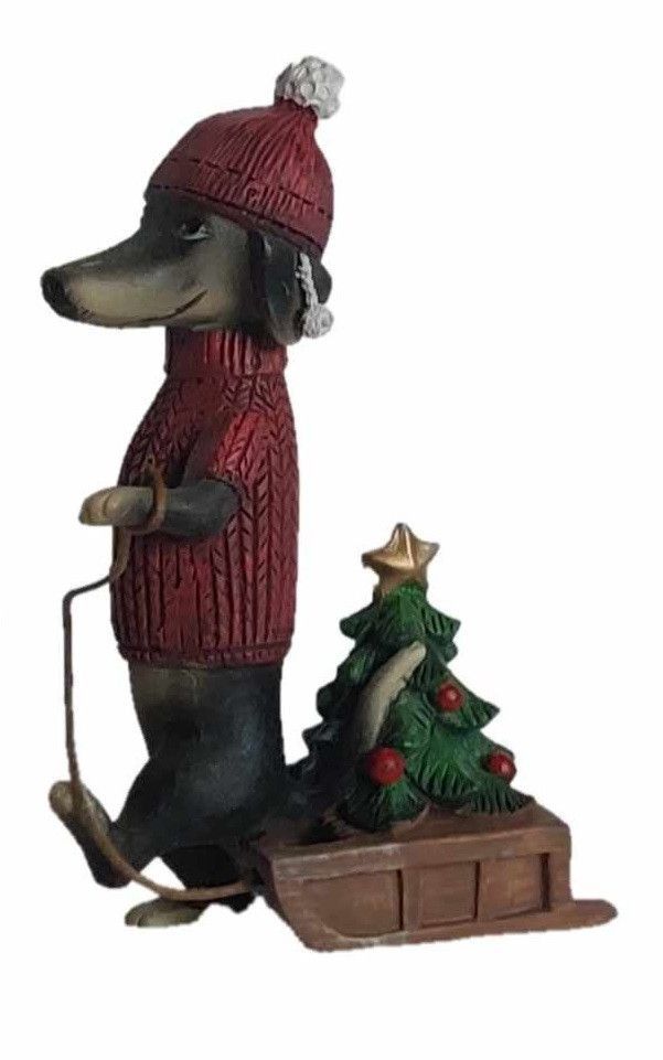 Weihnachtsdackel, Aufstellfigur, Dekoration Hunde Dackel Mütze Baum Ski Geschenke