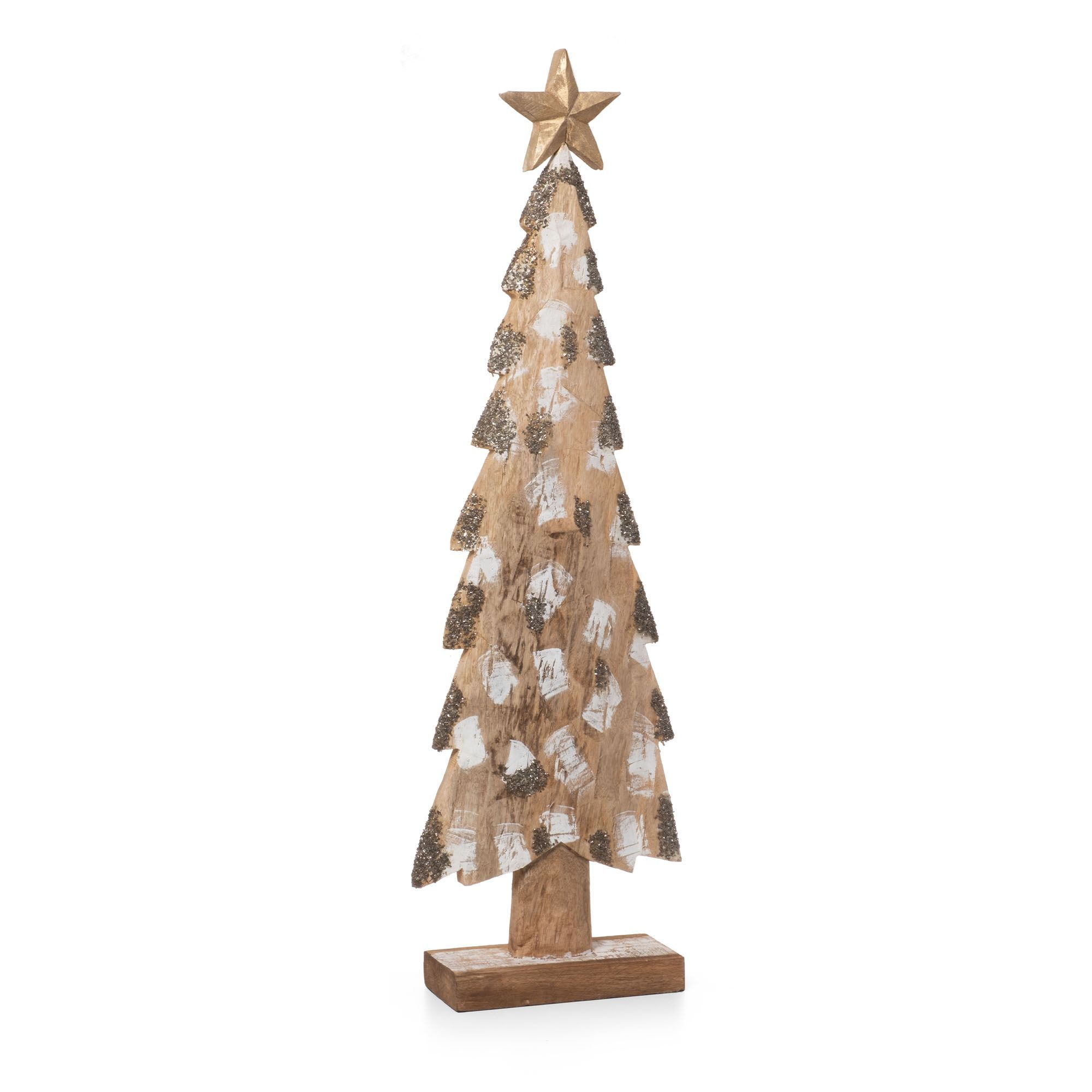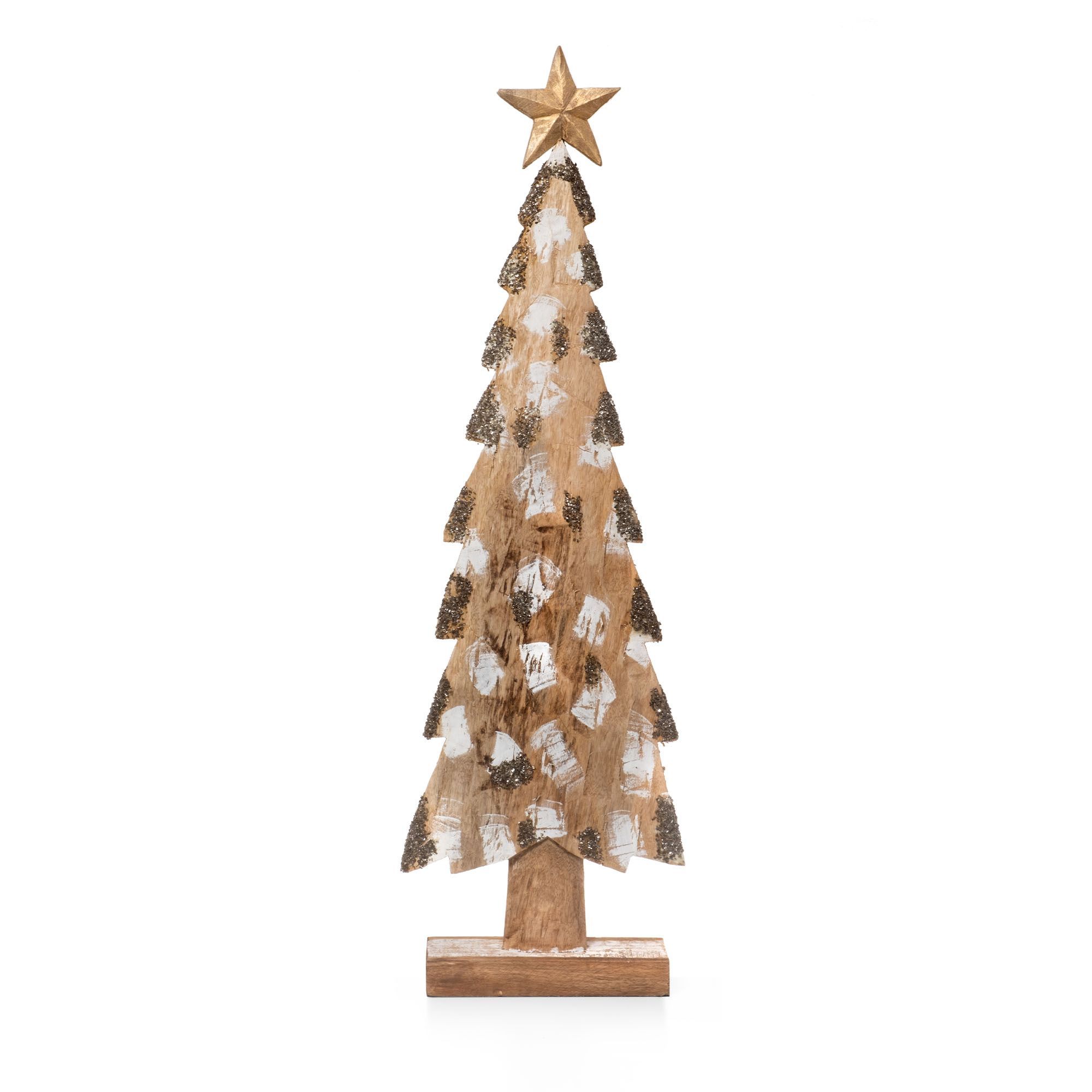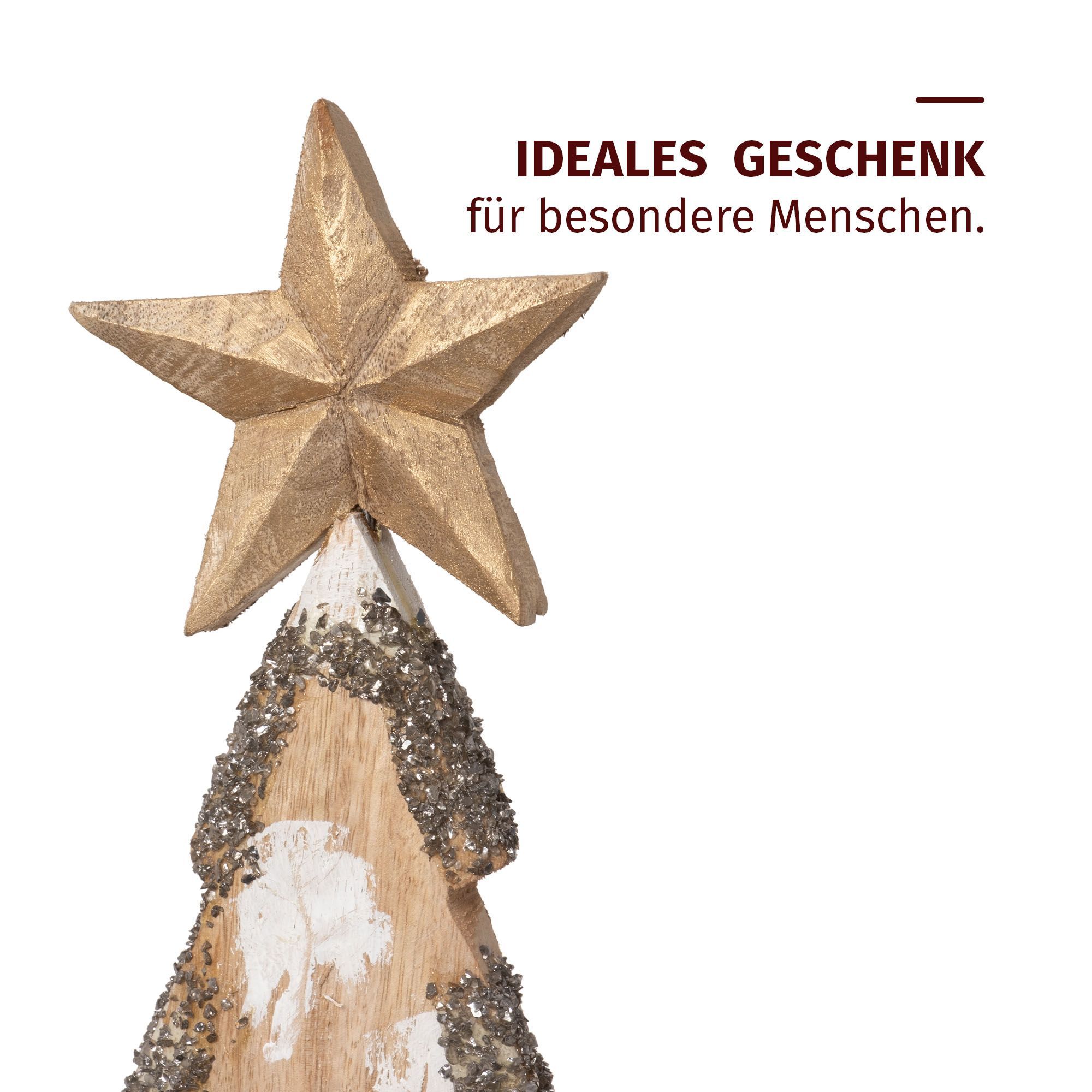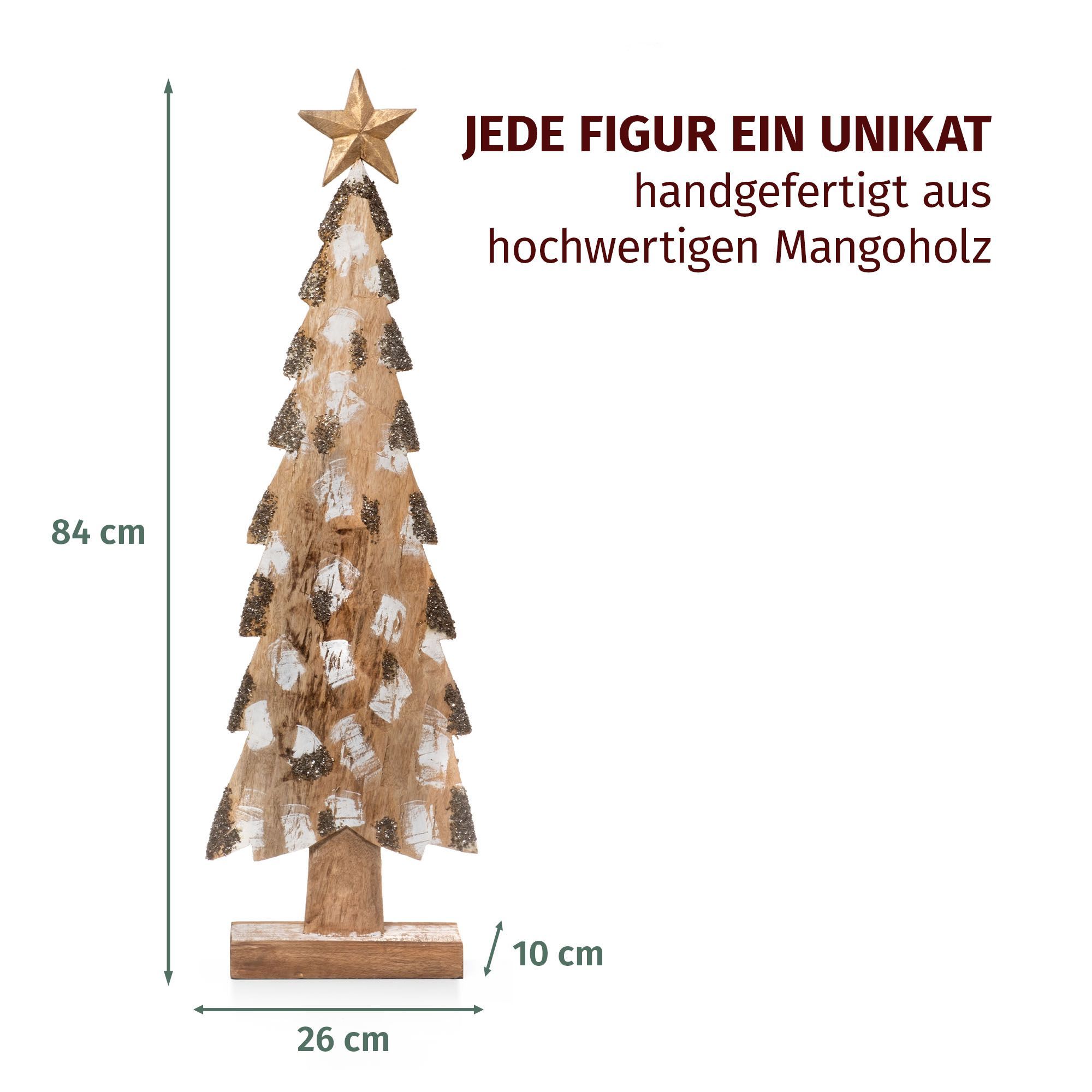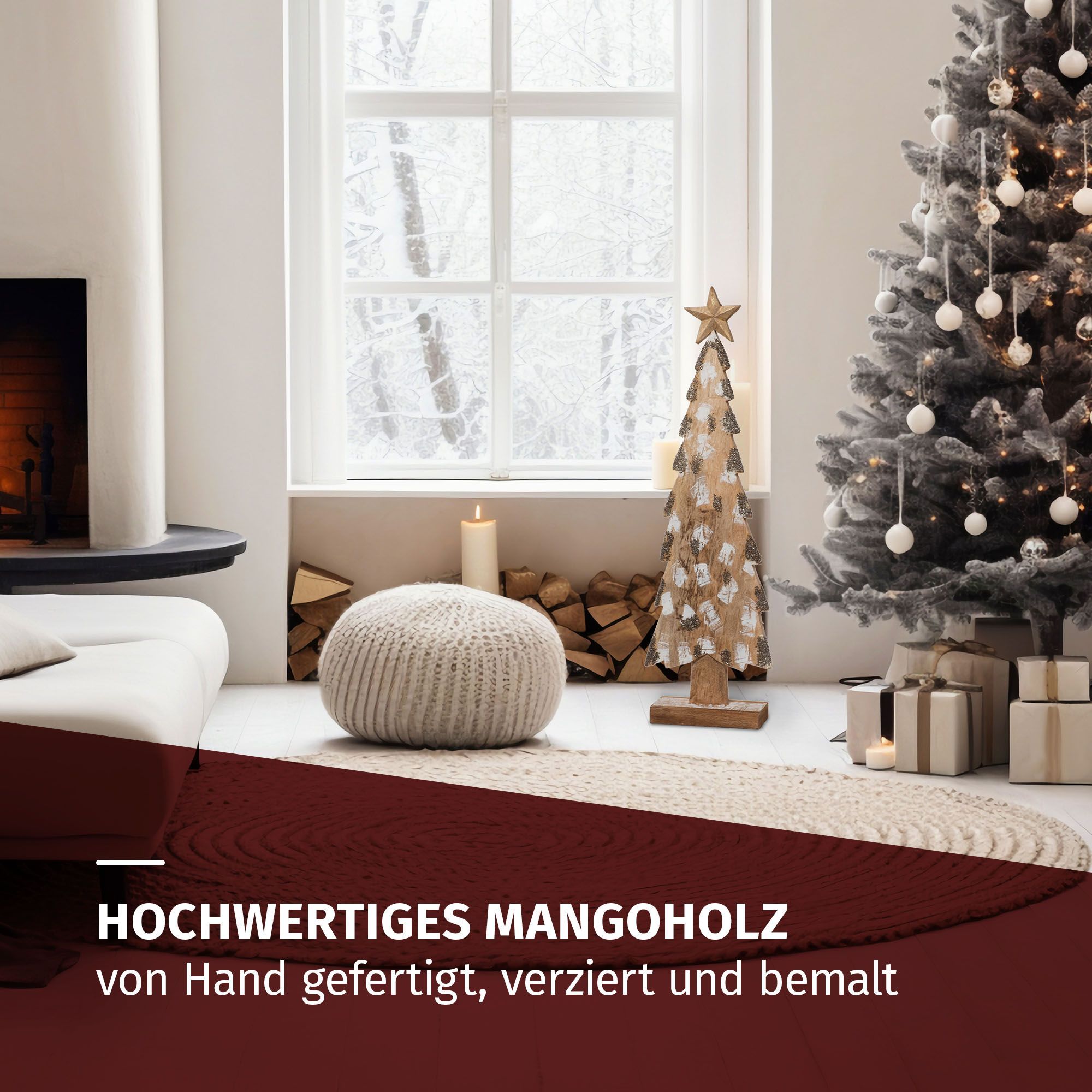 Weihnachtsdeko Holzbaum 84 cm aus Mangoholz mit Stern und Glitter handbemalt