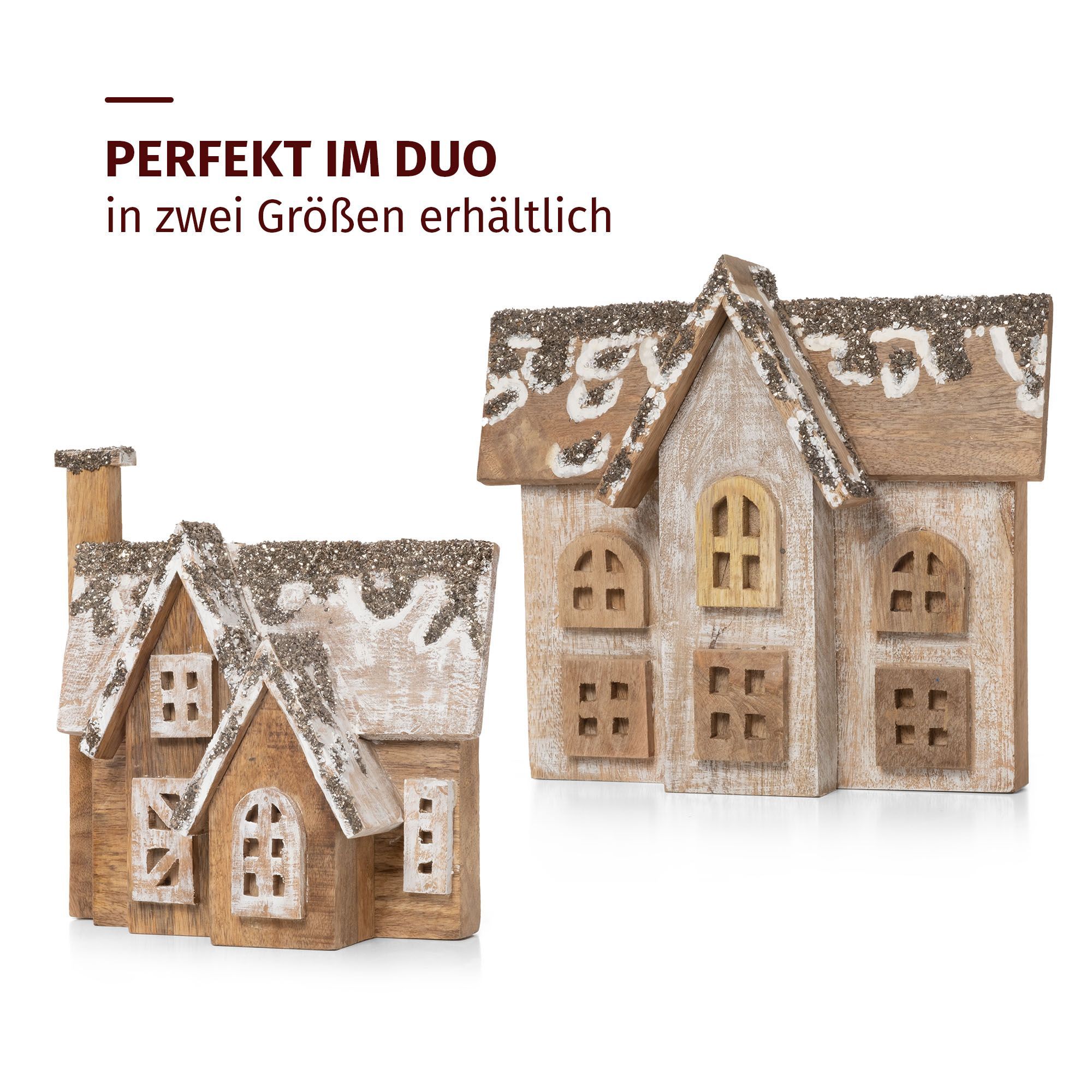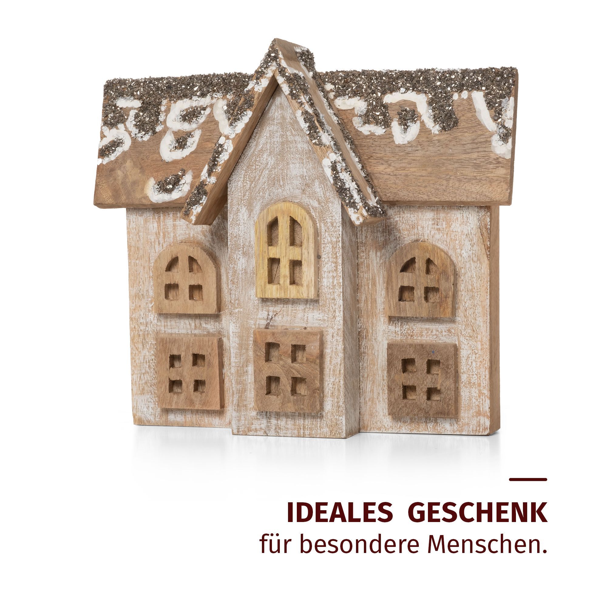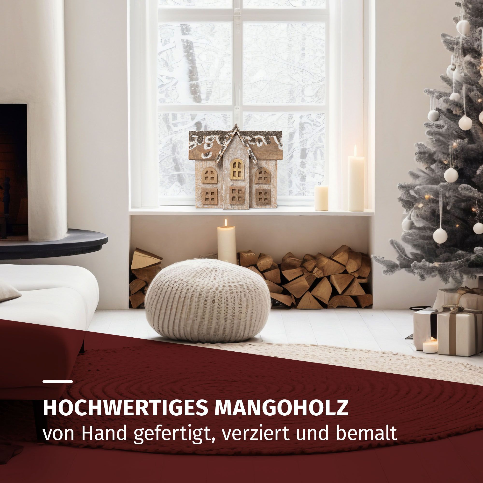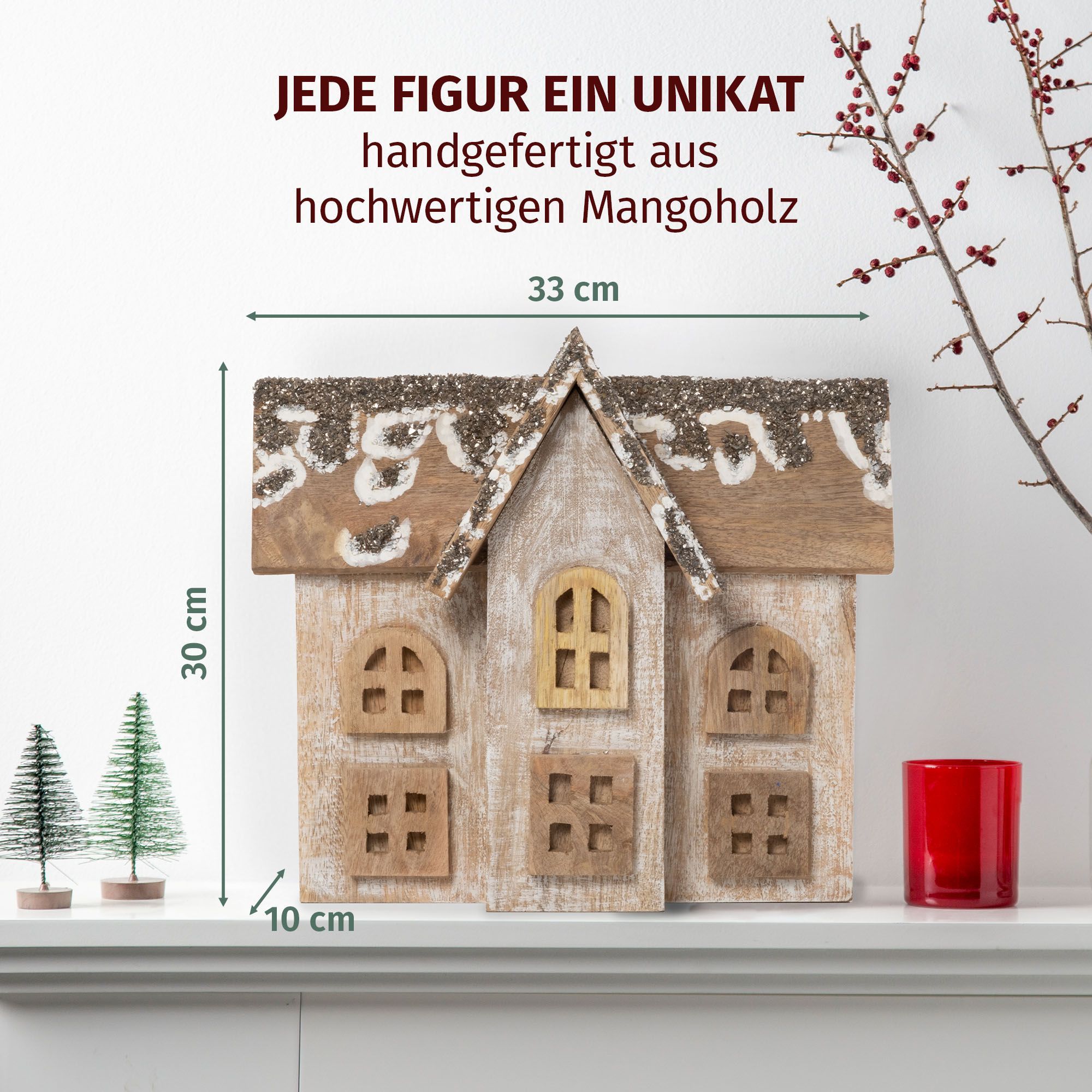 Weihnachtsdeko Holzhaus groß mit Glitzerdach 30 cm aus Mangoholz Dekoration