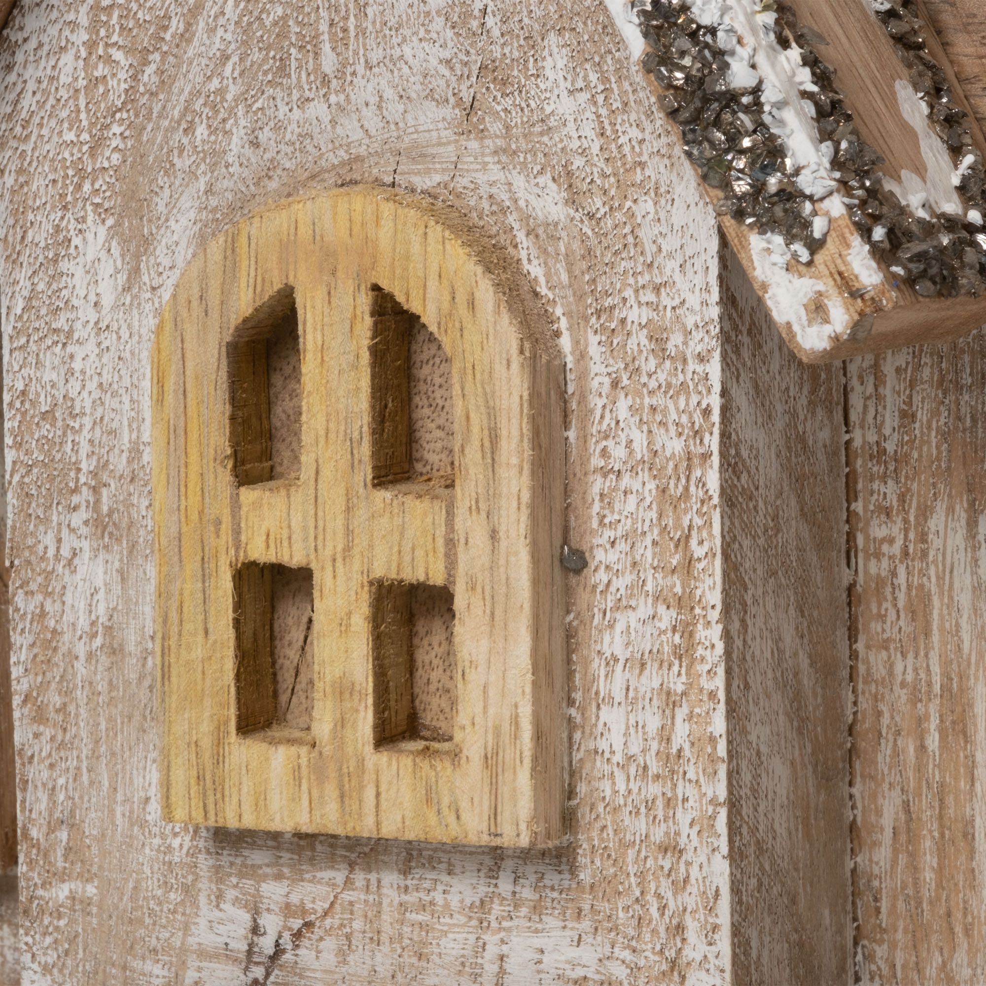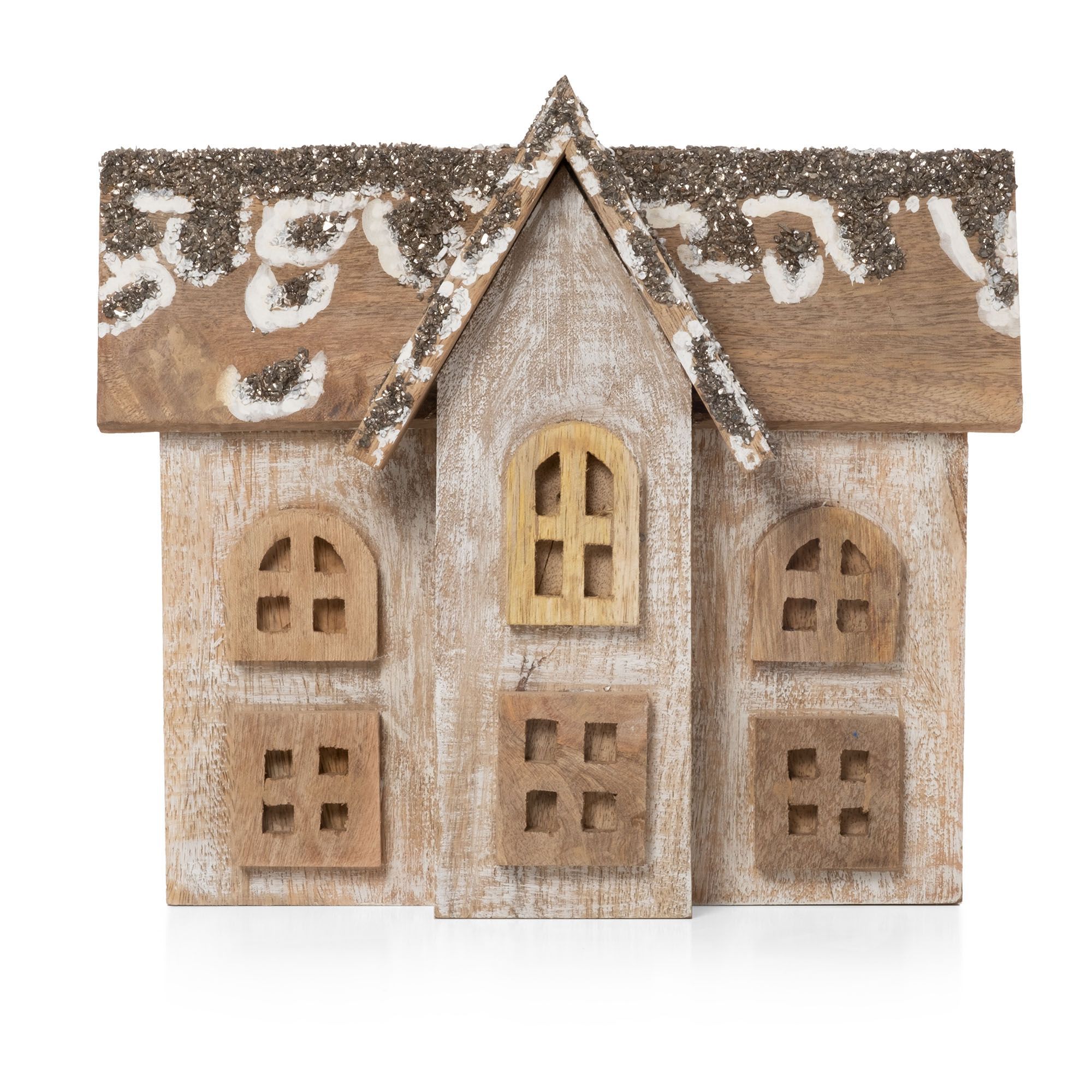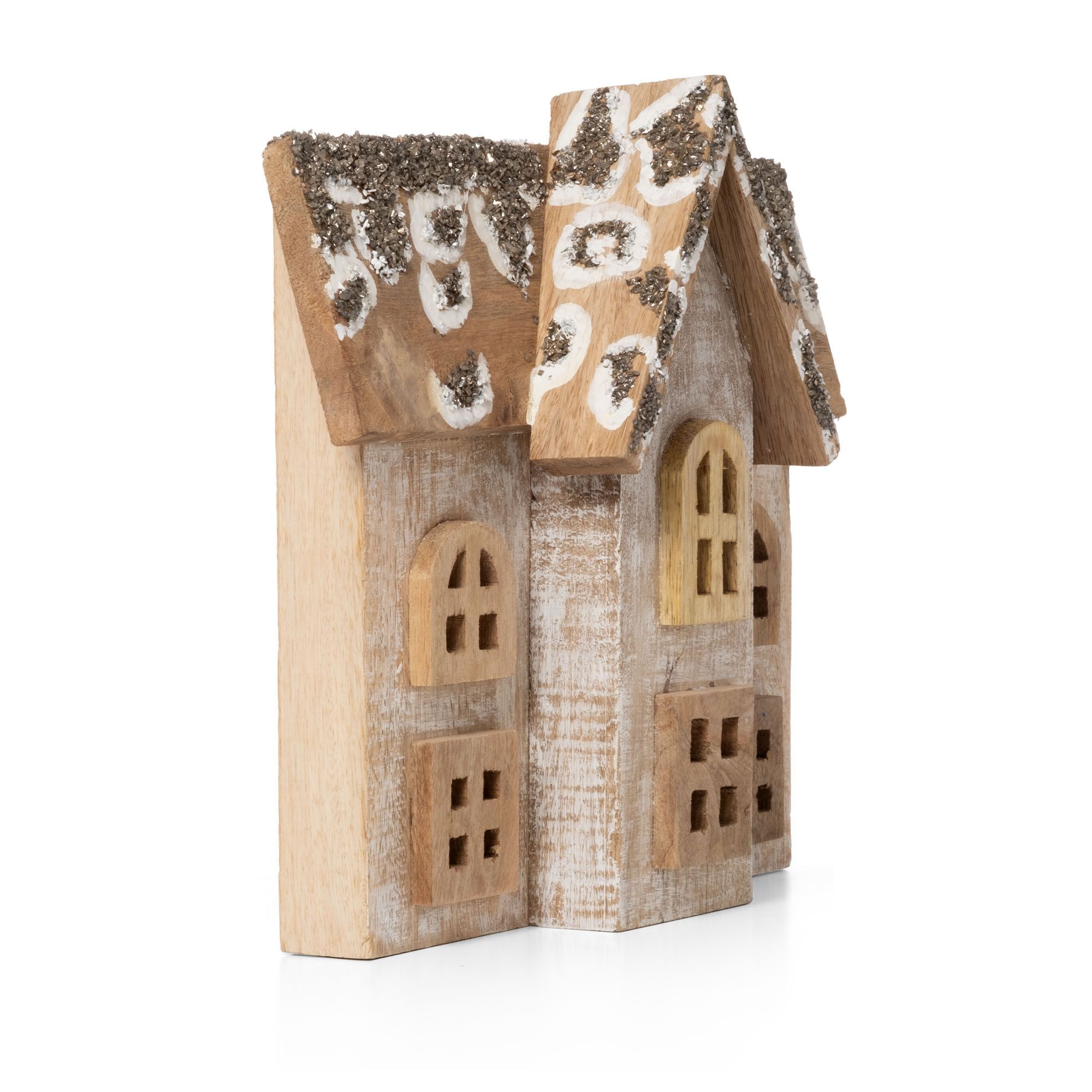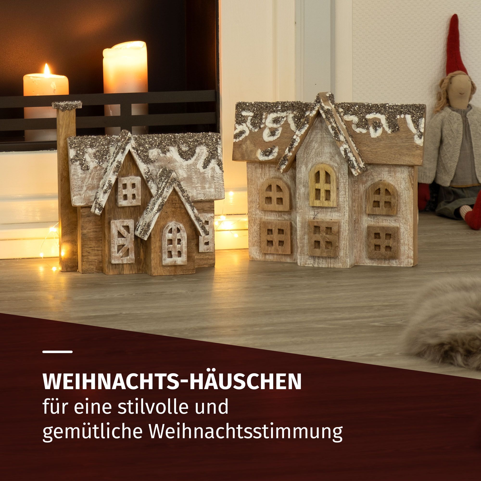 Weihnachtsdeko Holzhaus groß mit Glitzerdach 30 cm aus Mangoholz Dekoration
