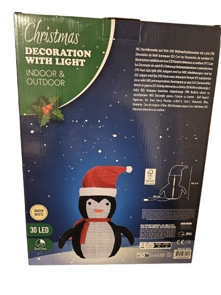 Weihnachtsdeko Pinguin mit 30 LED Innen Aussen 68 cm IP 44 Warmweiß