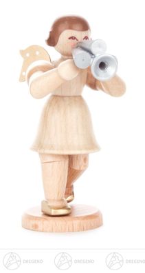• Engel mit Fanfare, langer Rock, natur H=ca 6 cm NEU Weihnachtsfigur Holzfigur