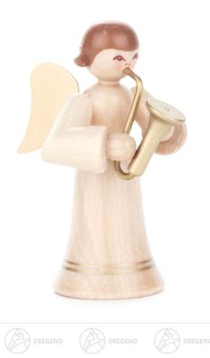 • Engel mit Saxophon, langer Rock, natur H=ca 6 cm NEU Weihnachtsfigur Holzfigur