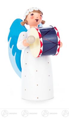 • Engel mit Trommel stehend, blaue Flügel H=ca 5,5 cm Erzgebirge Weihnachtsfigur