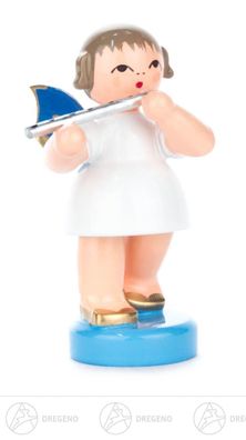 • Engel mit Querflöte stehend, blaue Flüge H=ca 5,5 cm Erzgebirge Weihnachtsfigur