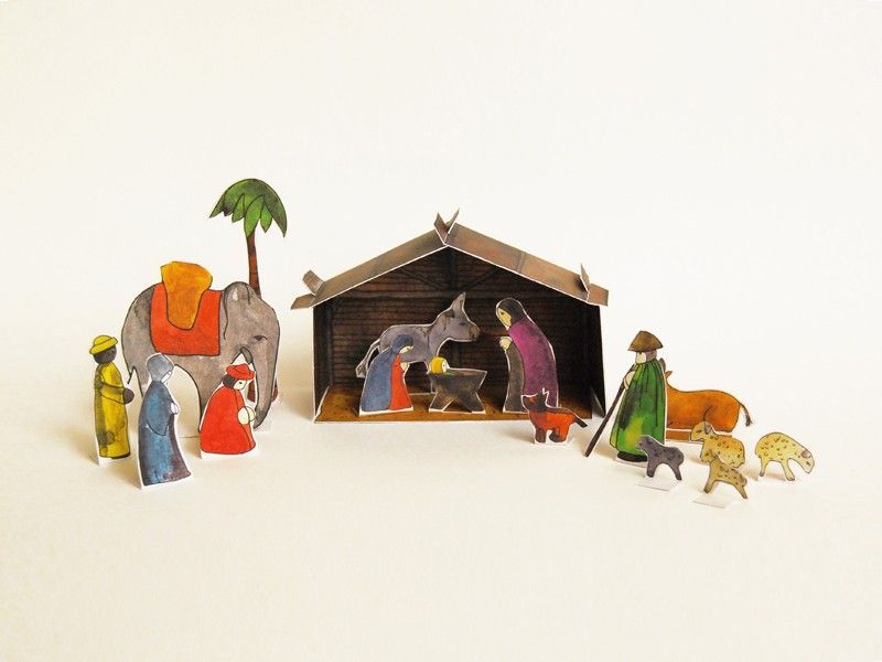 Weihnachtskrippe aus Papier