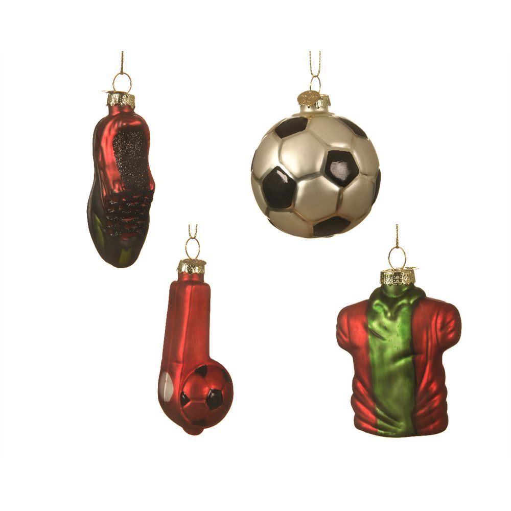 Weihnachtskugel 'Fußball' - Christbaum-Hänger, H. 6.7cm D. 6,7cm, rot. 4 Motive - 1