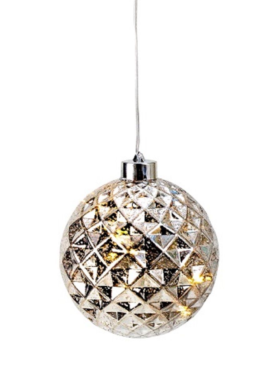Weihnachtskugel LED leuchtend silber 12 cm hängend