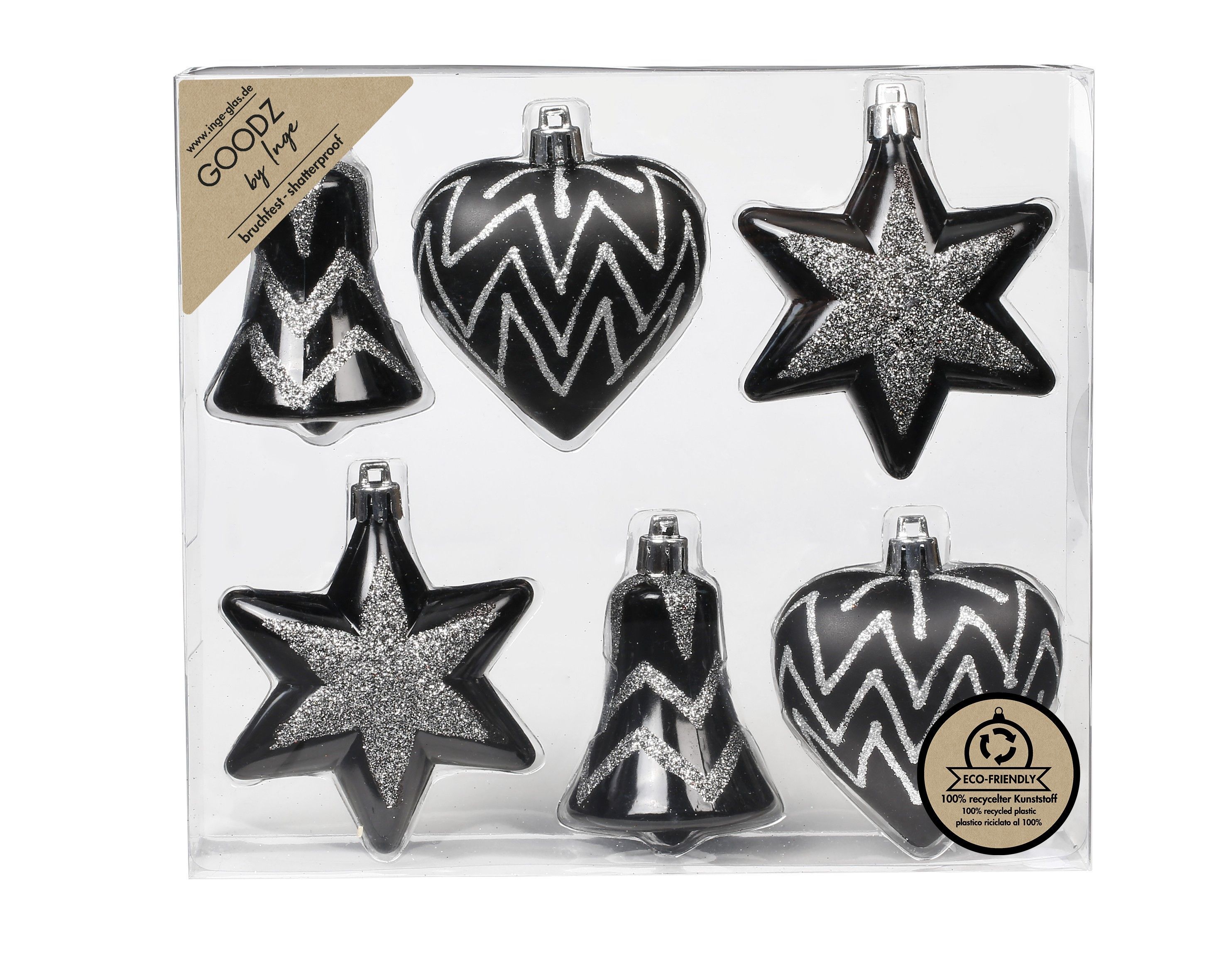 Weihnachtskugeln Formen dekoriert Kunststoff 9cm 6er Set Schwarz Mix