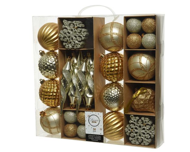 Weihnachtskugeln Kunststoff mit Eiszapfen 4-8cm 50er Set gold