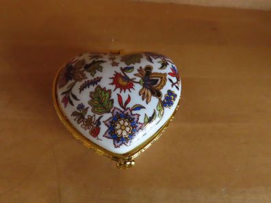 • Schmuckdose Zierschale Herzform Perlmuttfarben Keramik mit Motiv