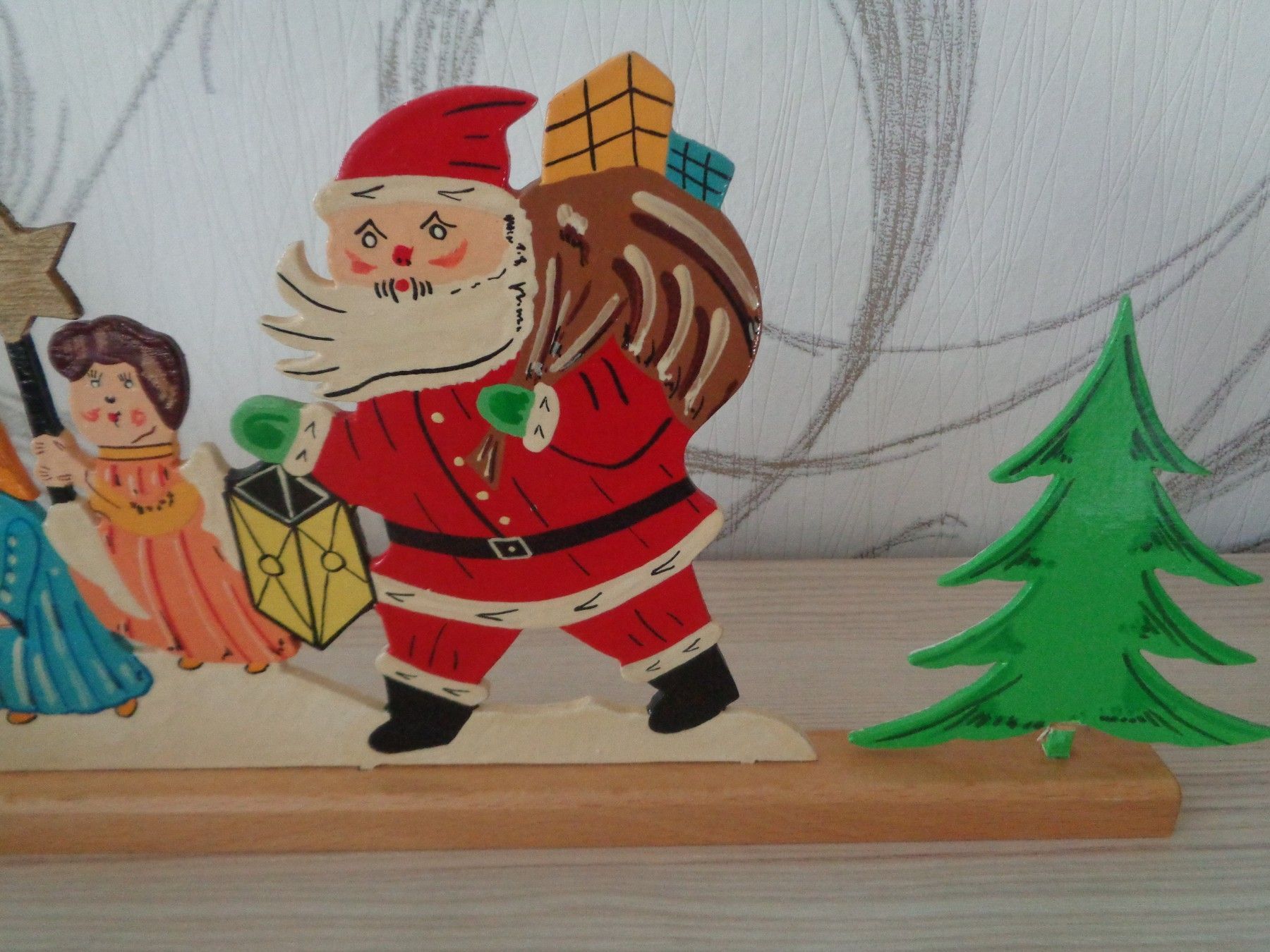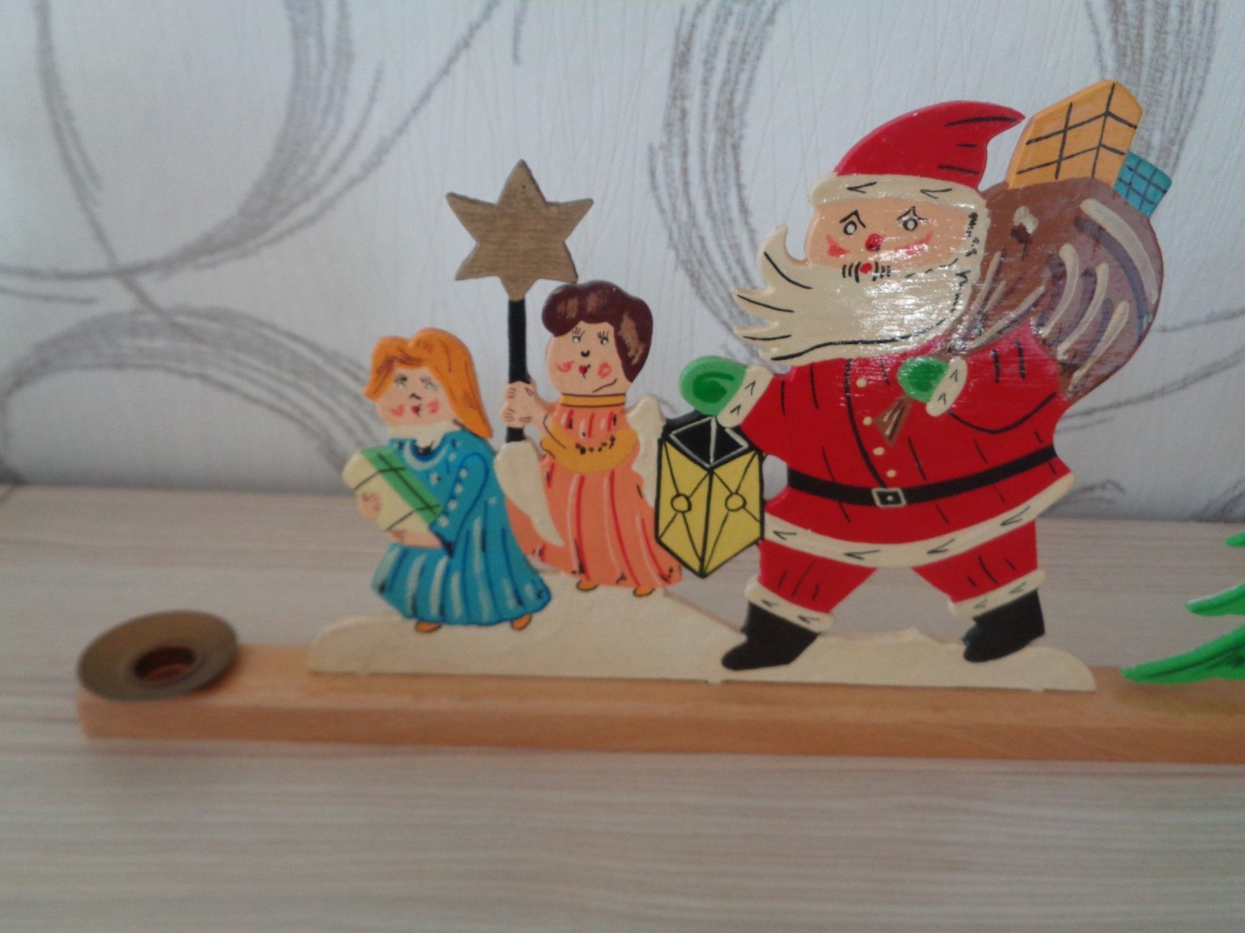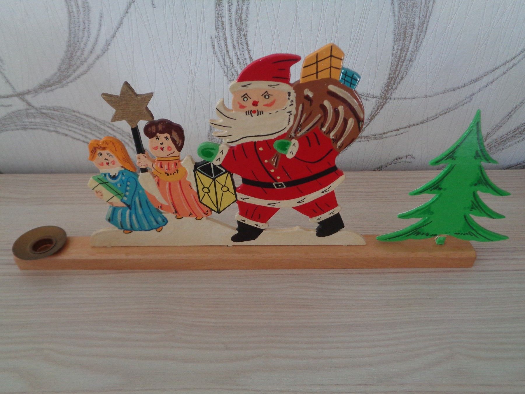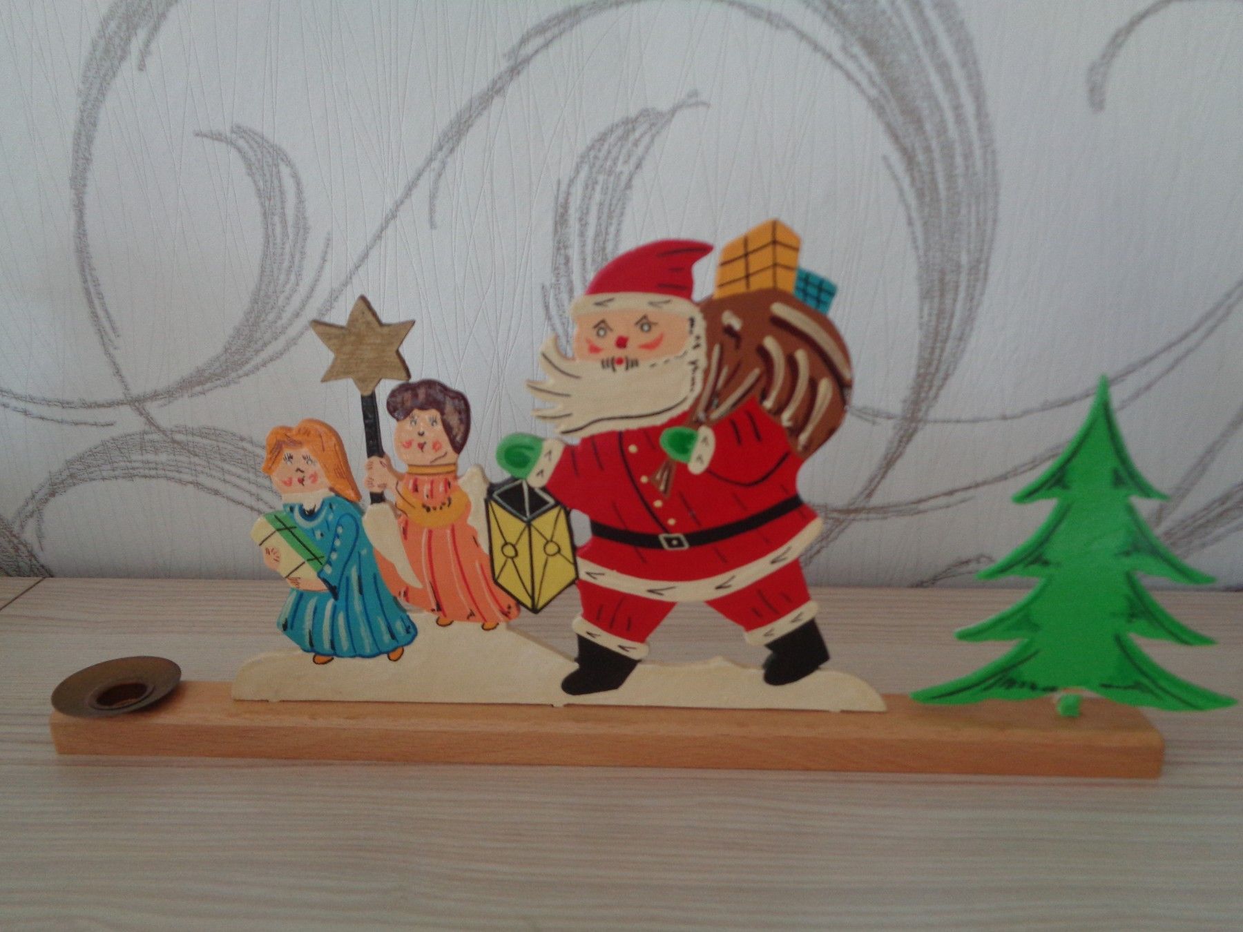 Biete in dieser Auktion an: Weihnachtsmann mit Kerzenhalter Flachfigur aus dem Erzgebirge gute Erhaltung, stabiler Stand, handbemalt, Höhe 16,5cm Breite 34cm Ein kleiner Makel. Der Baum ist unten angebrochen Da ich viele weitere Artikel im Angebot habe, schaut einfach mal durch. Vielleicht ist das p