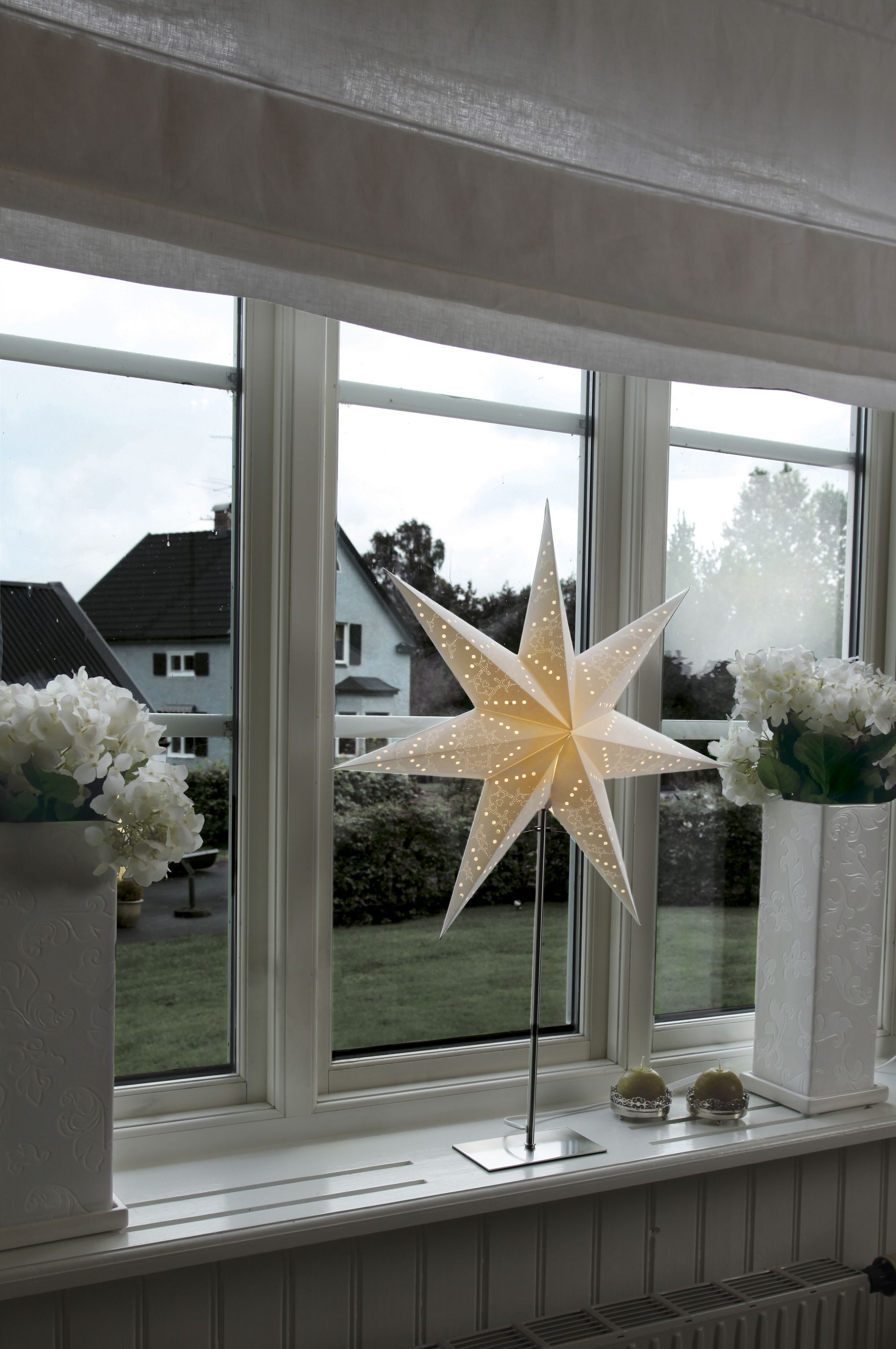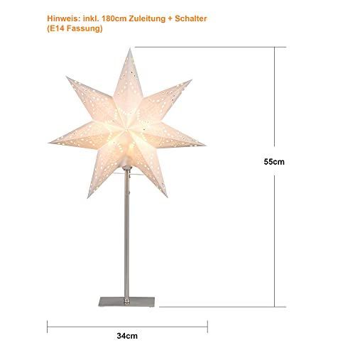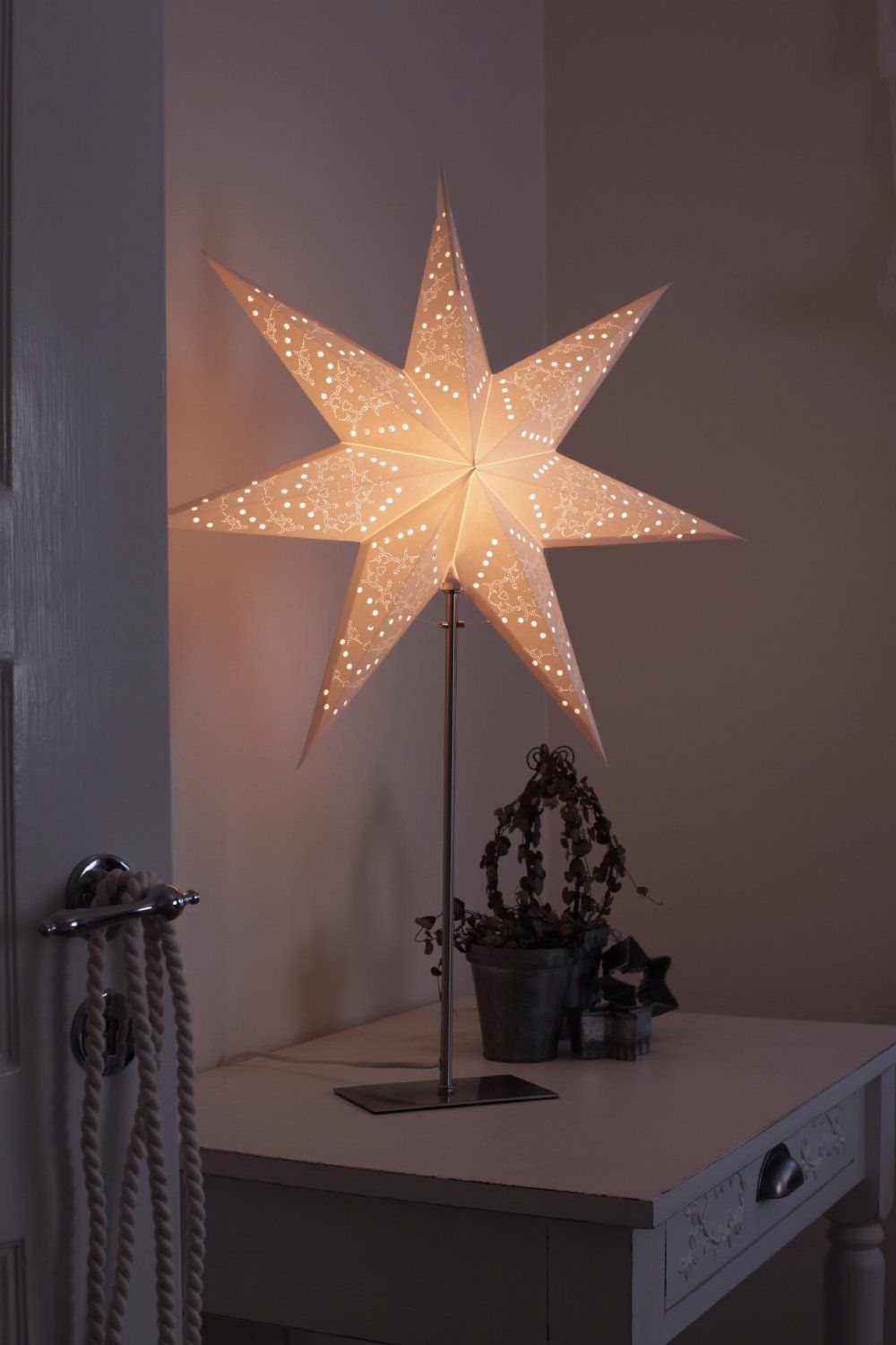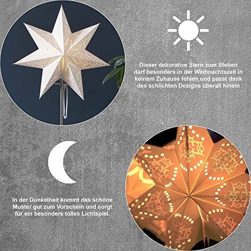Weihnachtsstern Sensy, 3D Papierstern, Weiß mit Metall-Fuß