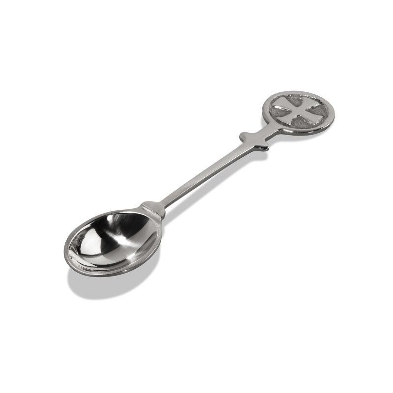 Weihrauchlöffel Messing vernickelt, mit schönem Kreuzsymbol. Länge 100mm, silberfarben Ideal für die Verwendung von Weihrauch.
