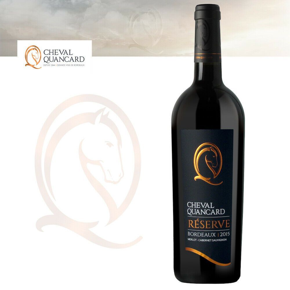 Cheval Quancard Reserve Rouge Bordeaux Jahrgang 2015 Dieser gehobene Gourmet-Wein eignet sich perfekt für die glanzvolle Festtags-Tafel wie auch für einen gemütlichen Abend am Kamin. Genießen Sie ein ausgewogenes und anspruchsvolles Bukett mit Noten von Kirschen, Brombeeren, Vanille, Tabak, Zeder, M