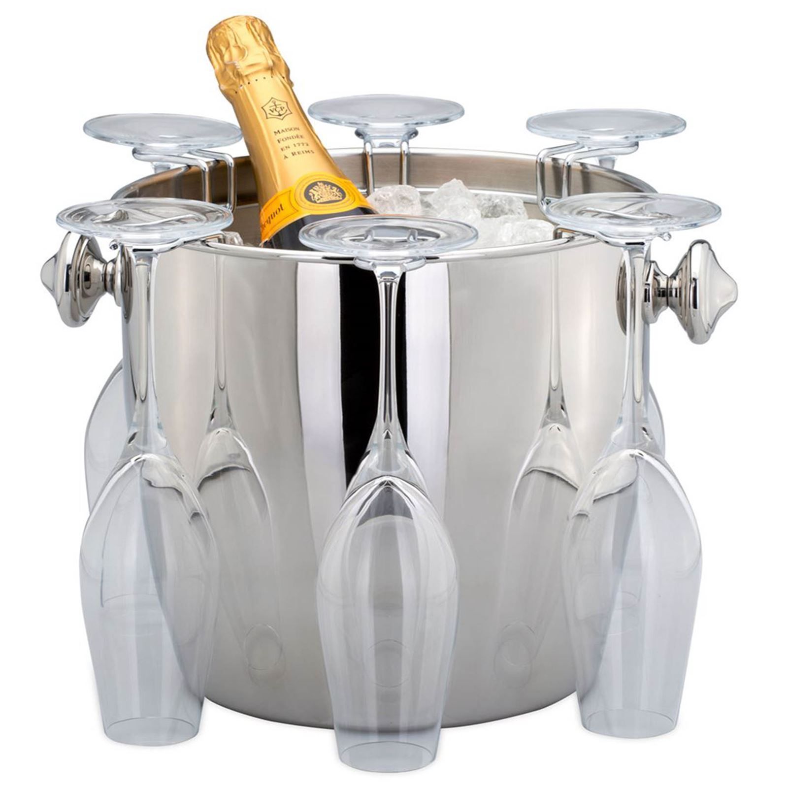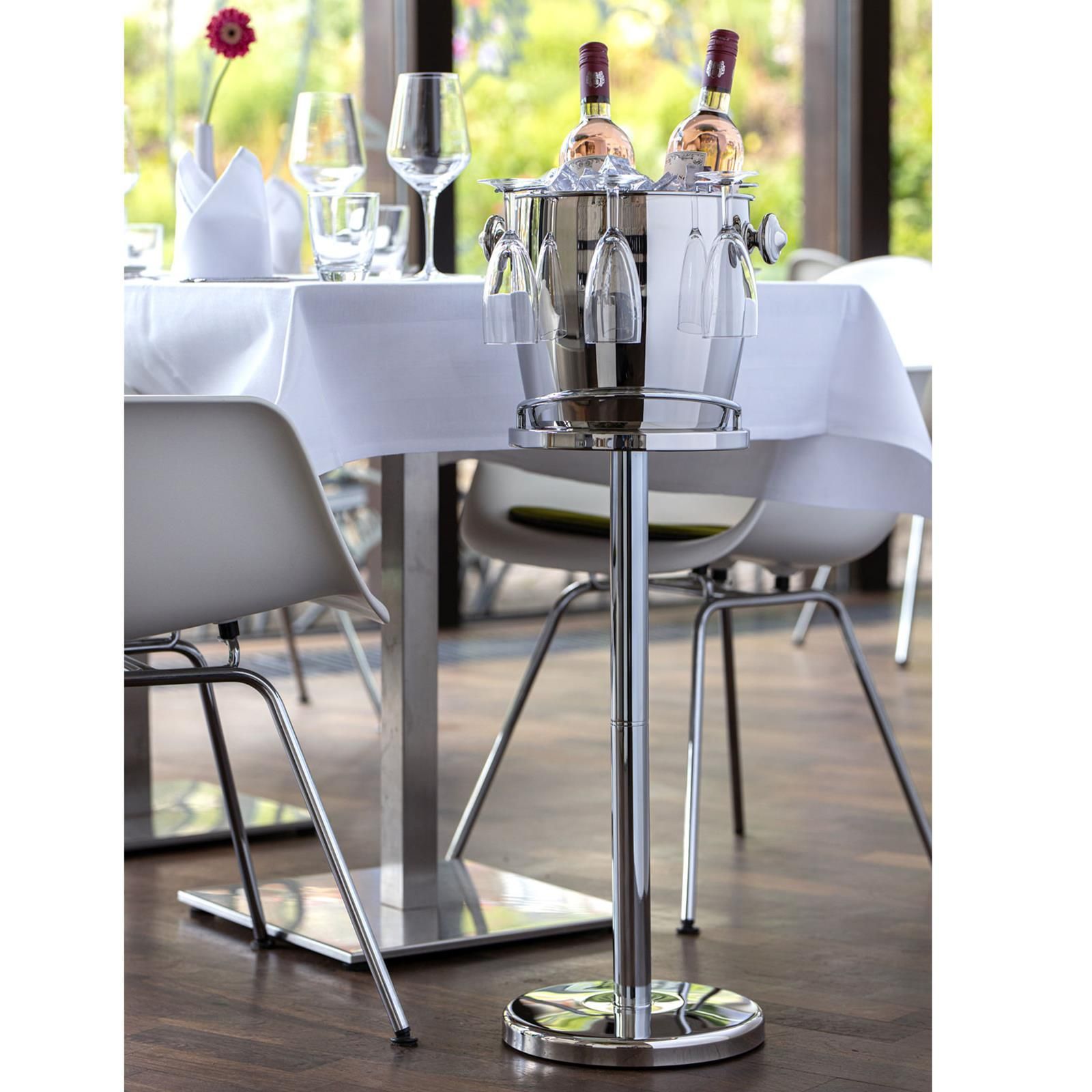 Wein- & Sektkühler Ø 24 cm Edelstahl mit Ständer 66 cm inkl Halterung für Gläser