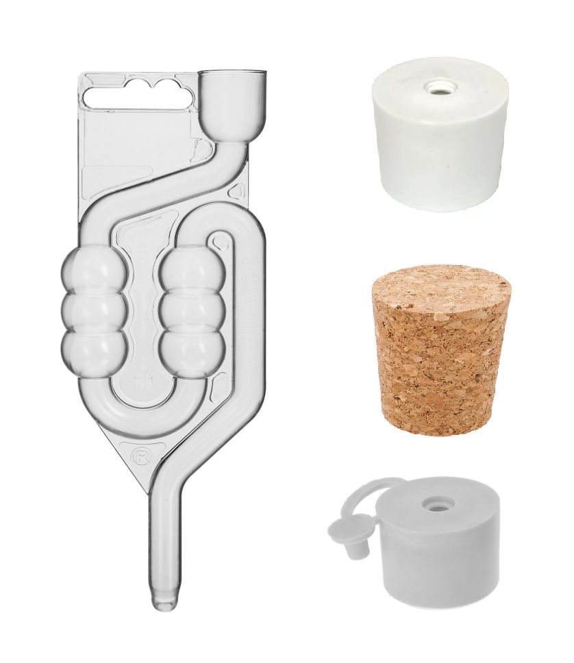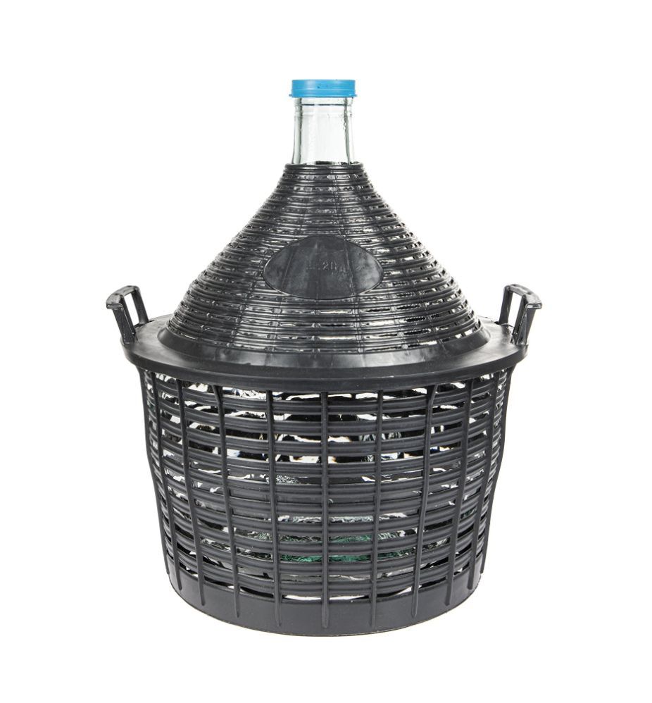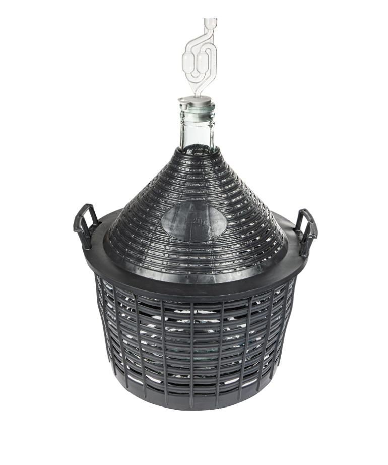 Weinballon + Kunststoffkorb + Gummistopfen+ Gärröhrchen, Glasballon, Gärballon
