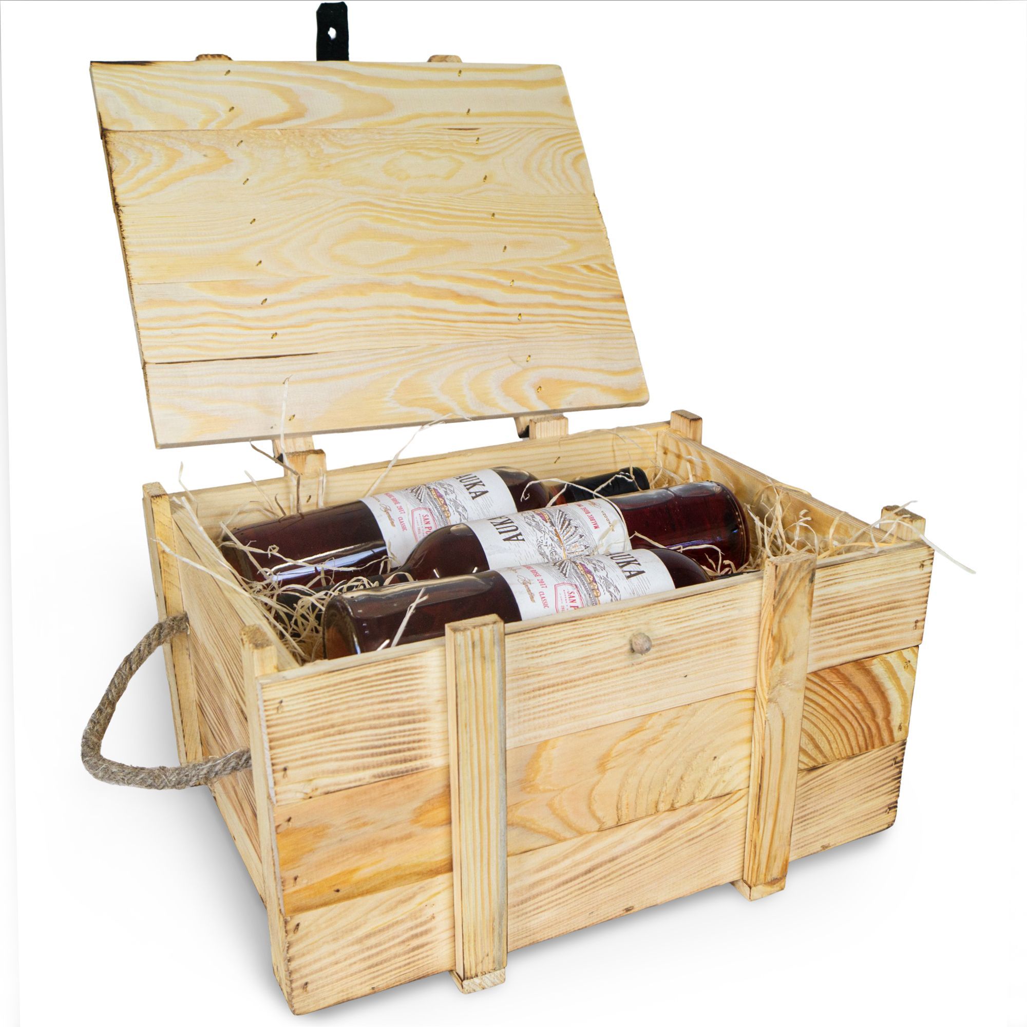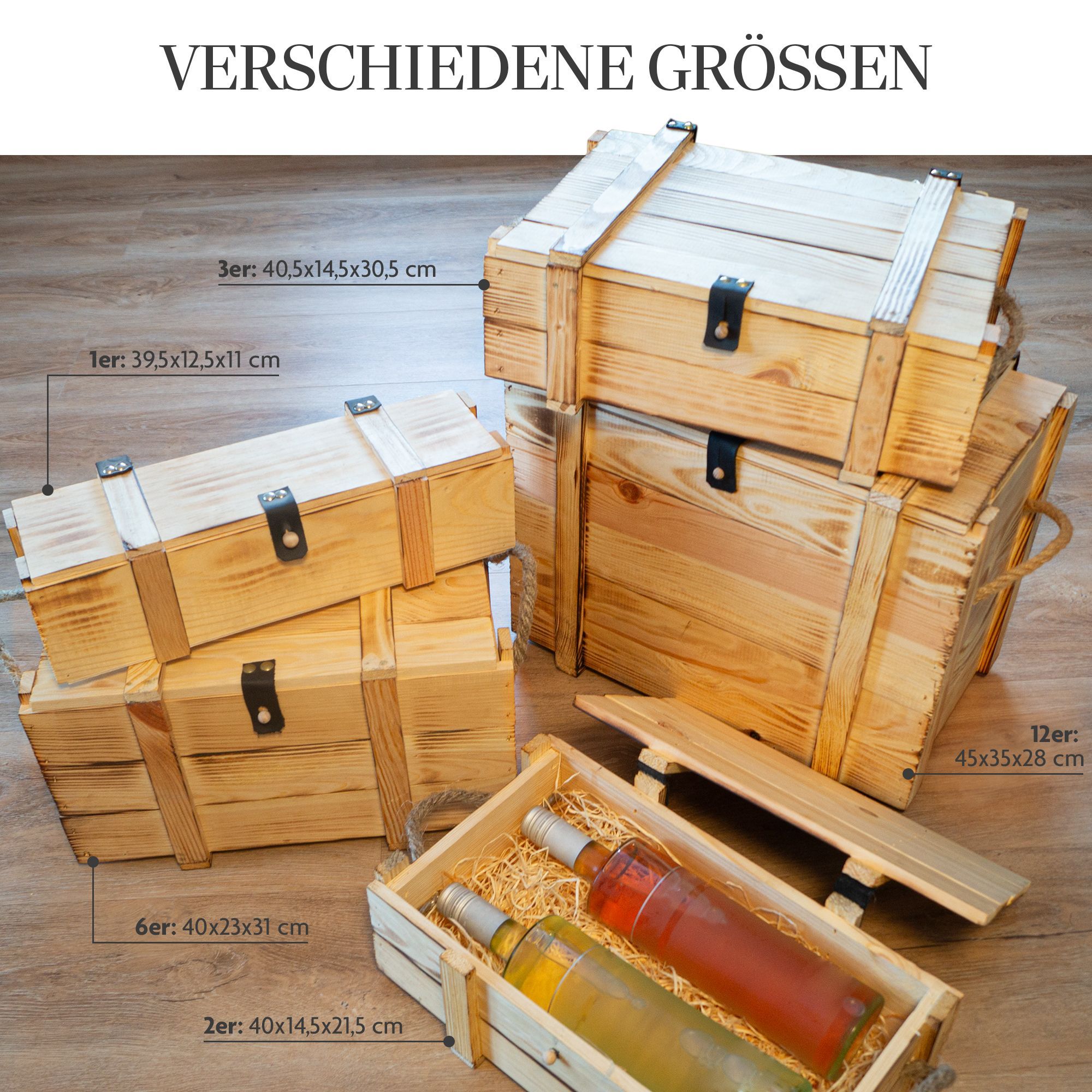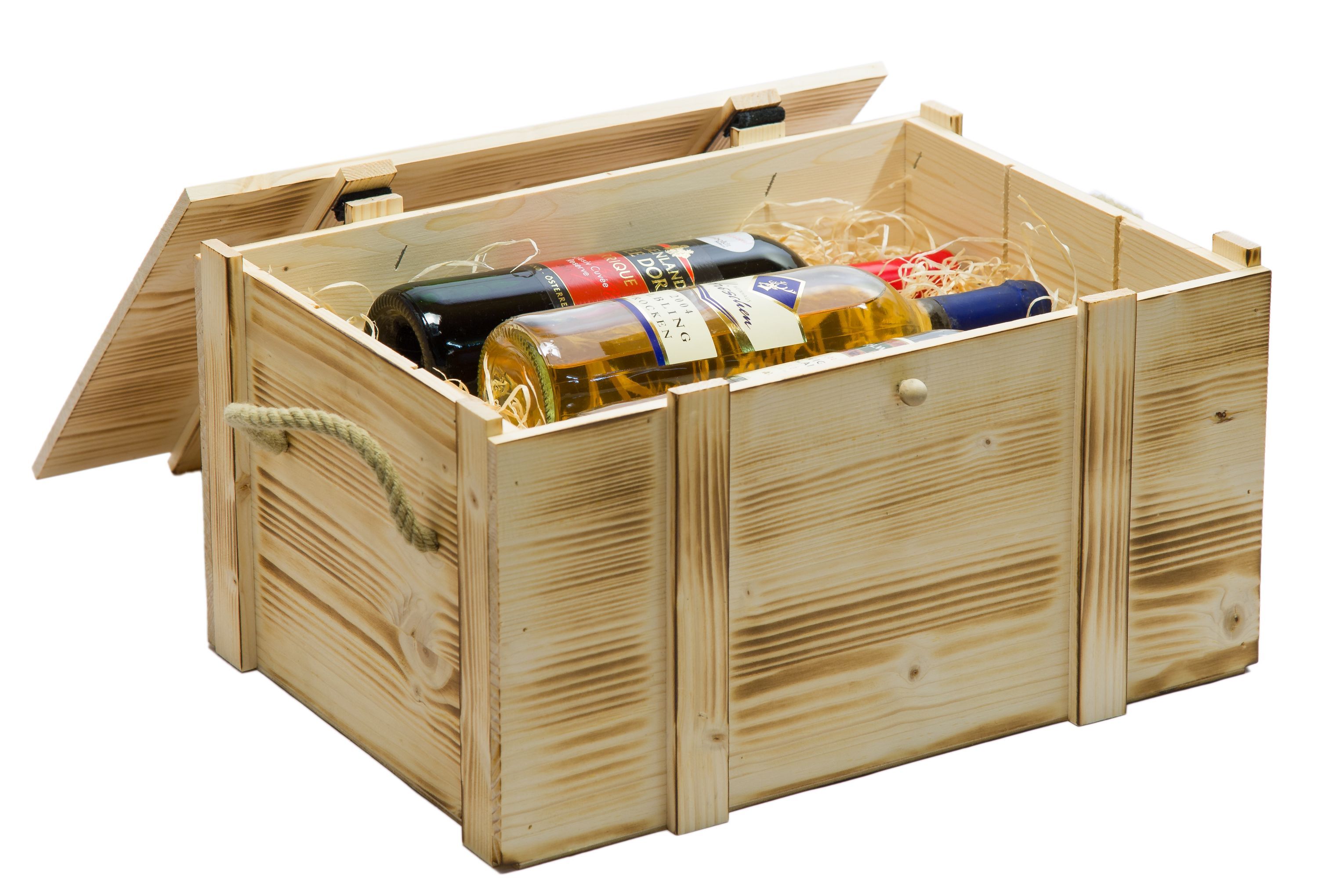 Weinbox 6er geflammt inkl. Holzwolle Weinkiste Geschenkekiste Holzkiste Aufbewahru