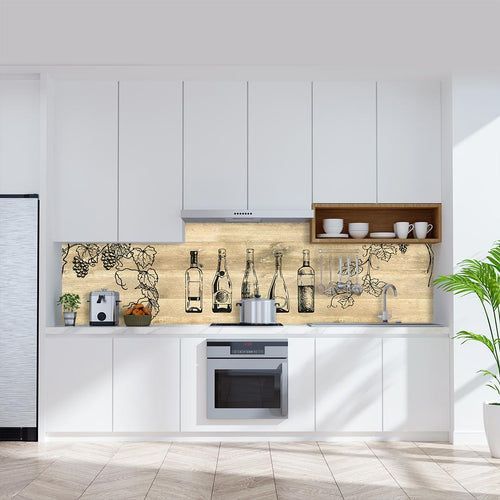 Weinflaschen auf Eiche gekalkt, fugenlose Wandpaneele aus Alu-Verbund 3mm, Küchenrückwand