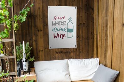 Gartenposter - 80x120 cm - Wein - Wasser sparen, Wein trinken - Weinflasche - Weintri