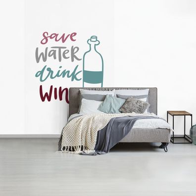 Fototapete - 195x300 cm - Wein - Wasser sparen, Wein trinken - Weinflasche - Weintrin