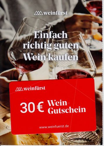Weinfürst 30 € Weingutschein Gutschein für Neukunden Gutscheincode weinfuerst. de