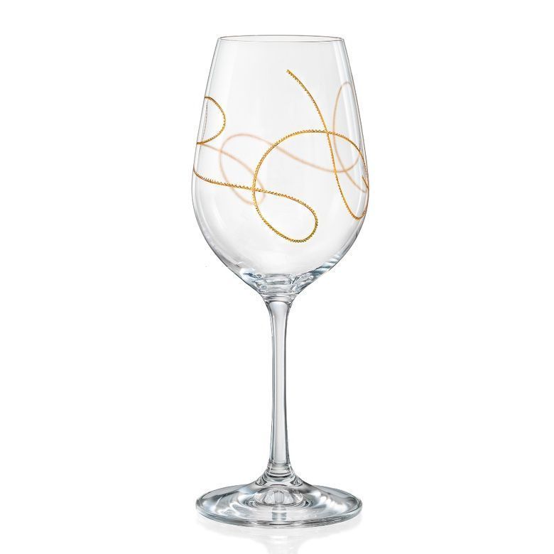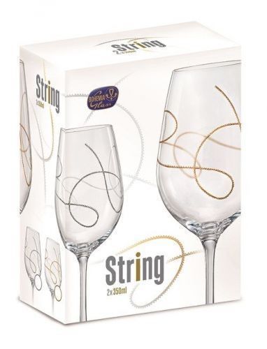 Weingläser Rotweingläser Model String Gold 350 ml 2er Set Kristallglas Bohemia