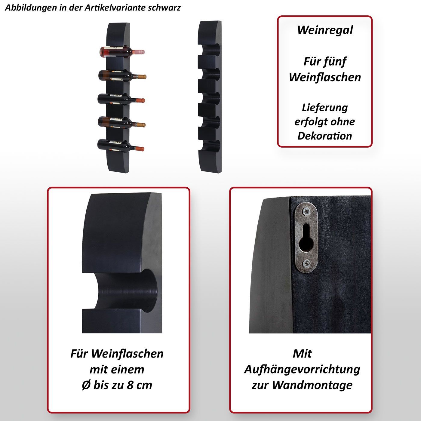 Mendler Weinregal Colmar, Flaschenregal Wandregal Flaschenhalter, für 5 Flaschen 99x13x9cm