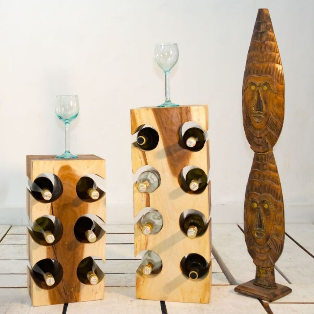Weinregal / Flaschenhalter Butelka ca. H50cm massives Suar-Holz Wein-Flaschen