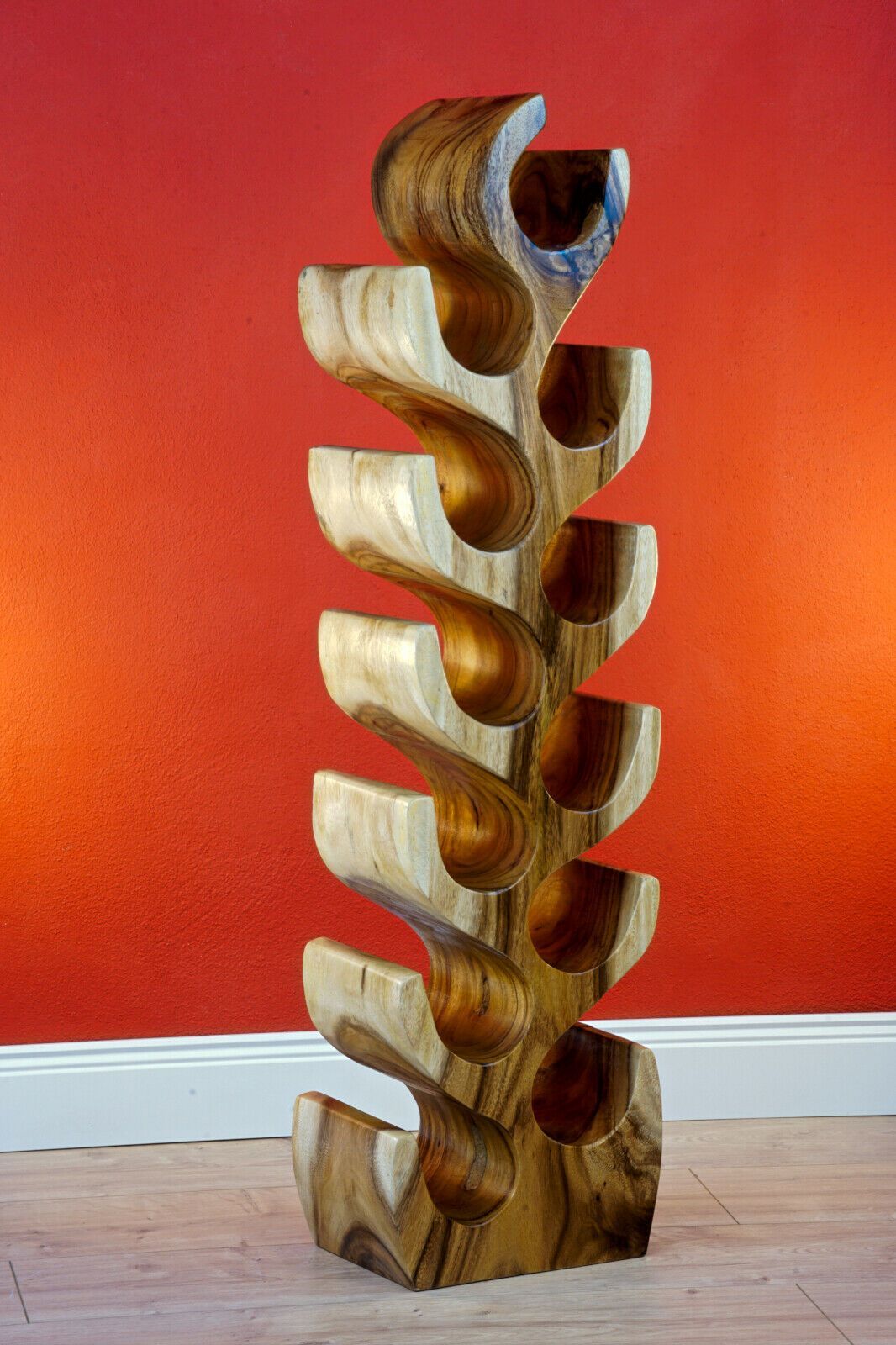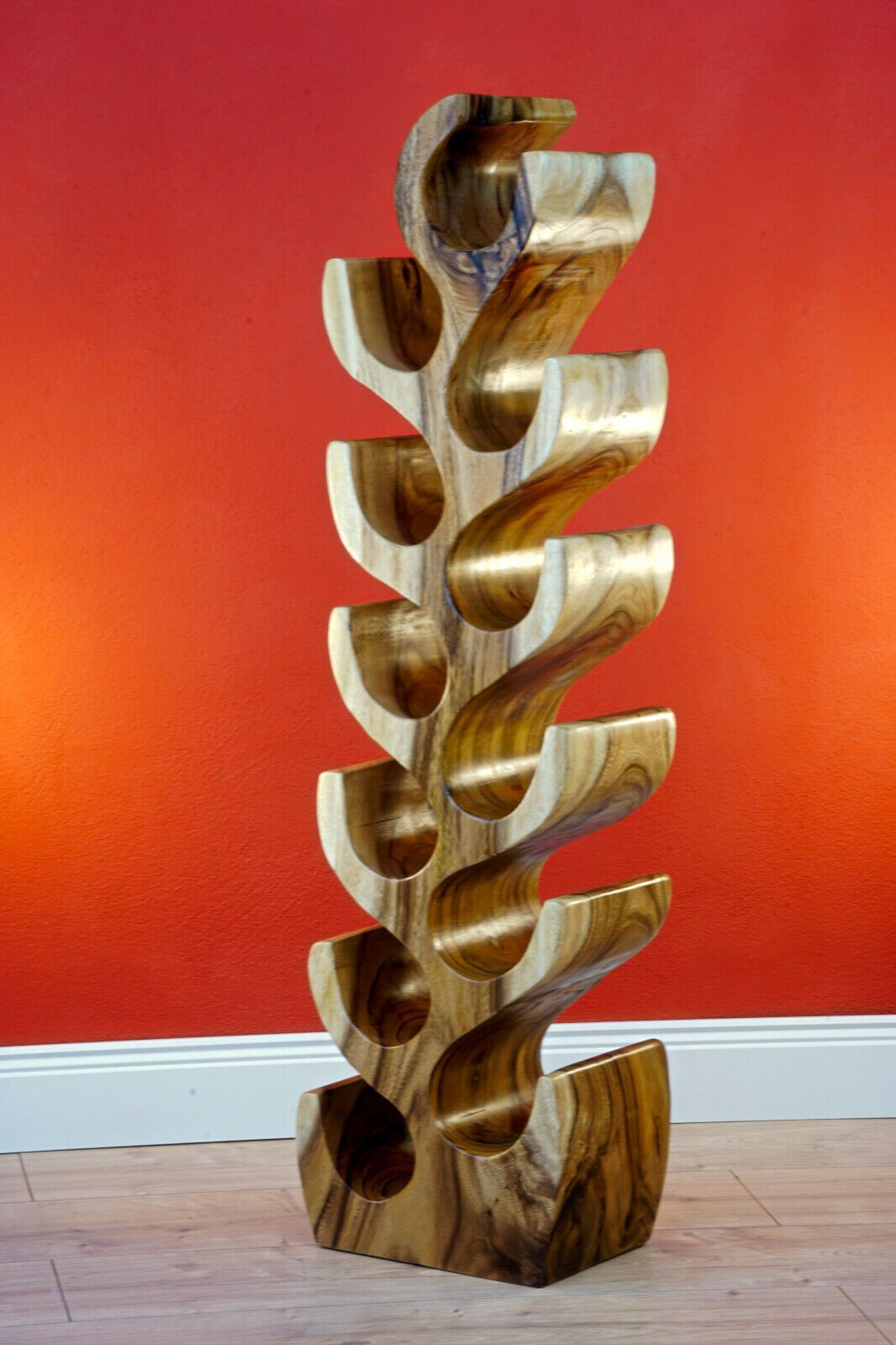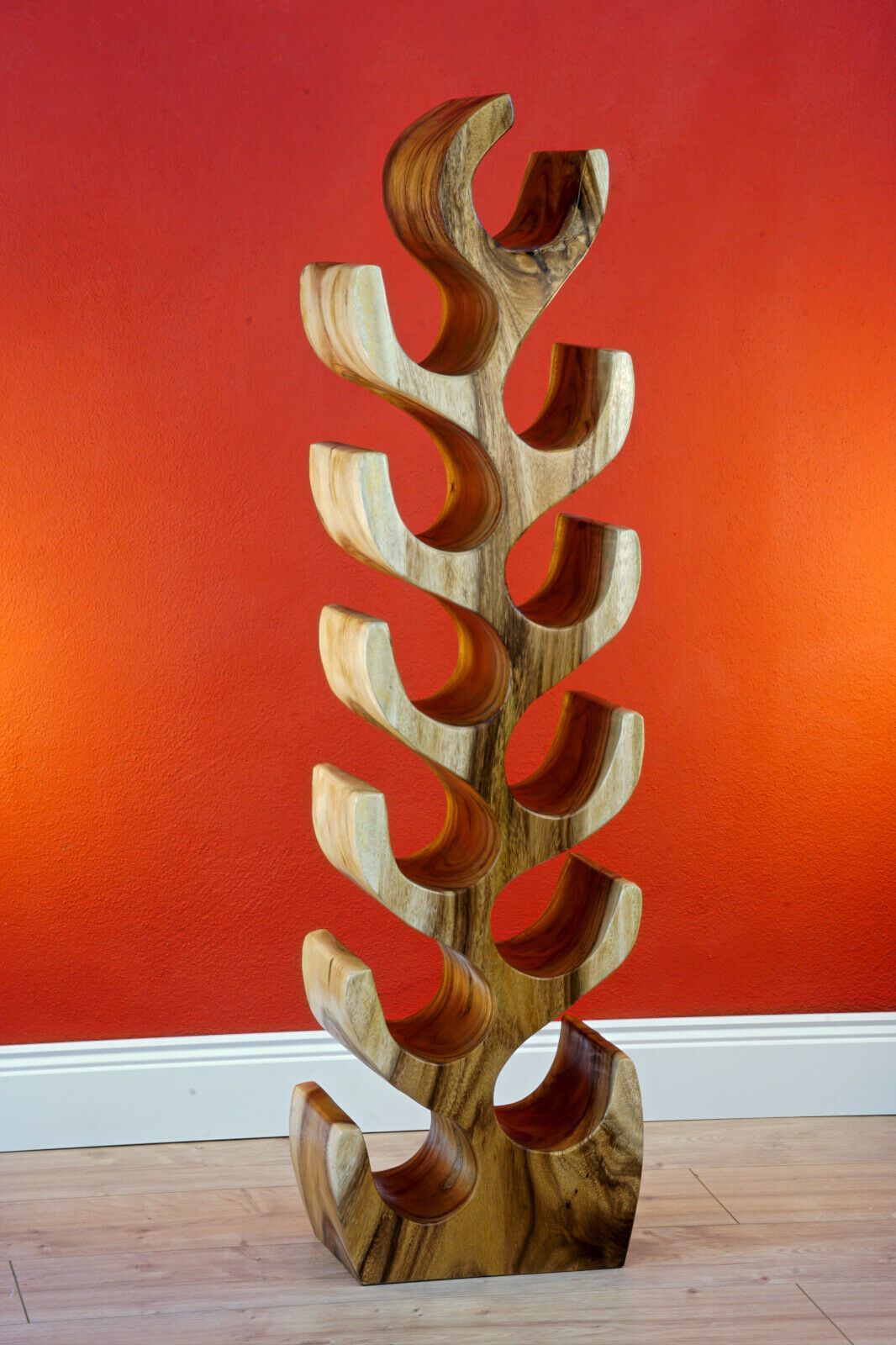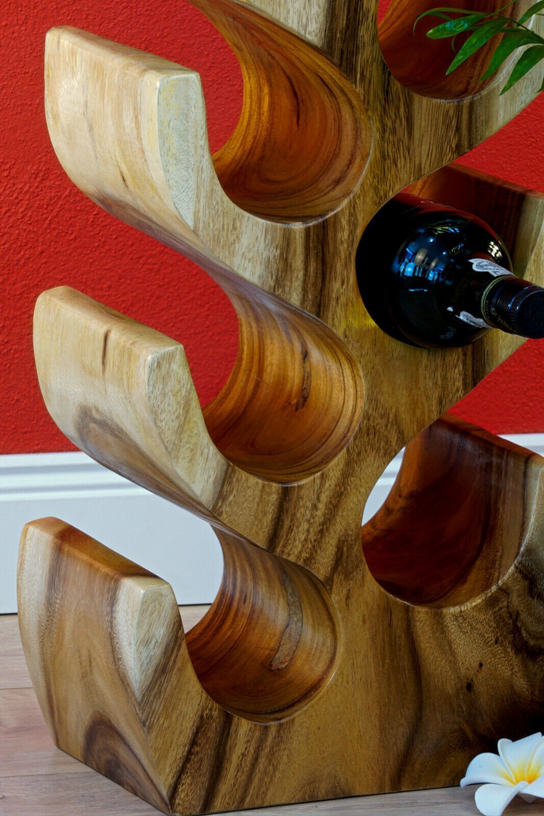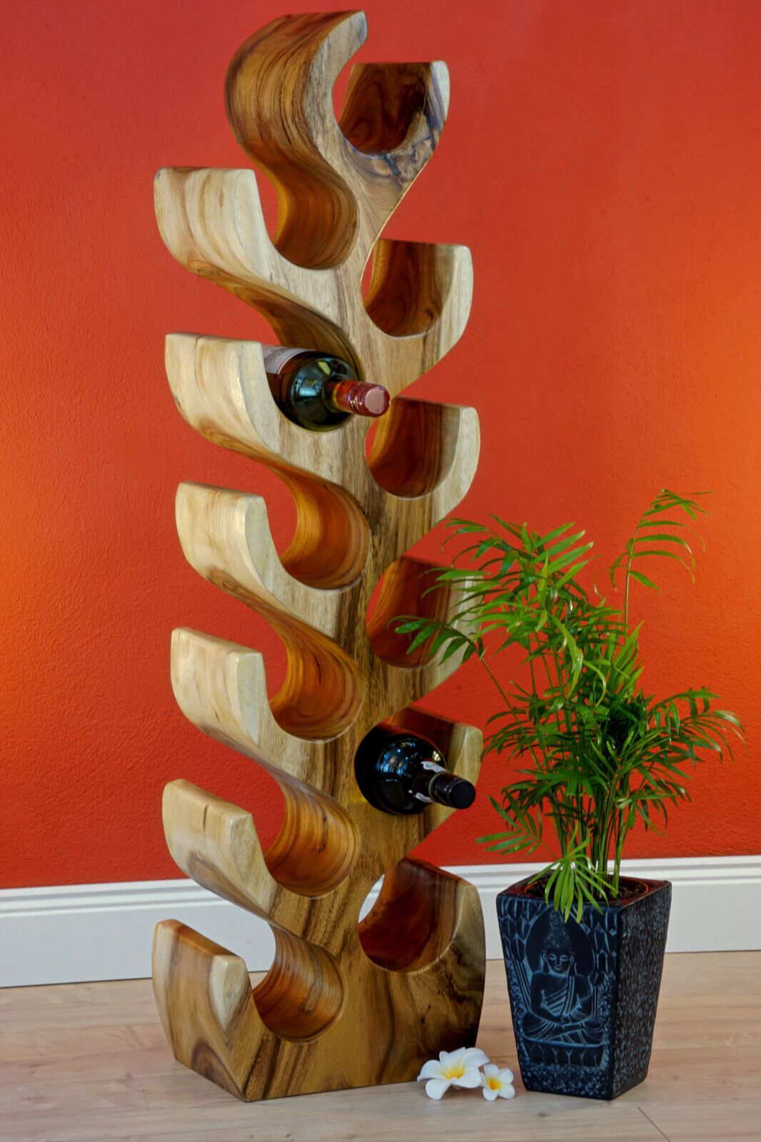 XL Holz Weinregal natur XL Teak Weinregal natur Die dekorative Variante zum herkömmlichen Weinschrank erhalten Sie mit diesem herrlich geschwungenen Weinregal aus massivem Akazien Holz . Handgefertigt und mit einer wundervollen Maserung überzeugt es nicht nur Weinliebhaber, sondern auch solche, die