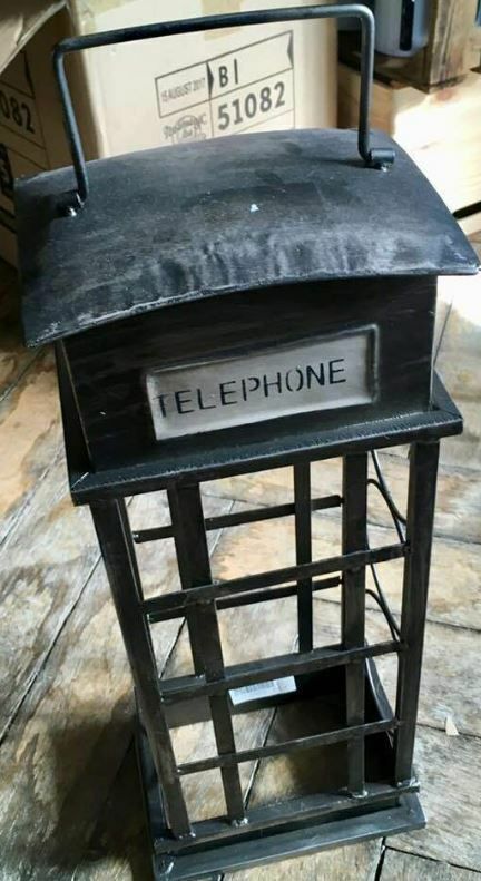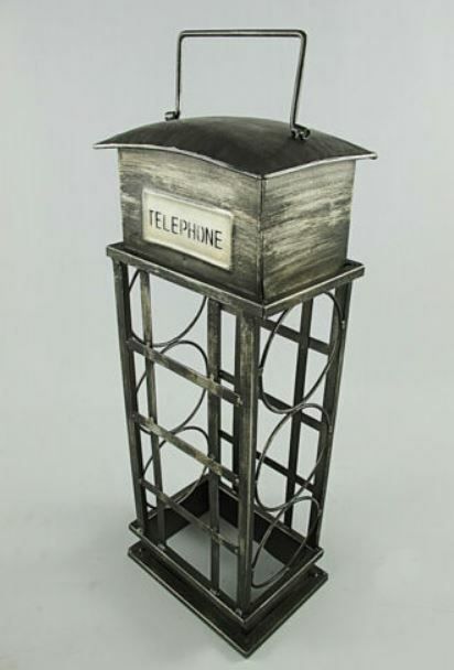 Wunderschönes und massives Weinregal bzw. Flaschenregal aus Metall im Shabby Style in Form einer Telefonzelle Material: Eisen ( im Shabby retro Stile ) Maße: Höhe 55 cm x Länge 18 cm x Breite 13cm Gewicht: 1,8 Kilo Freistehend Bietet Platz für 3 Flaschen Versand Euro 5,-- Der Artikel kann auch gerne