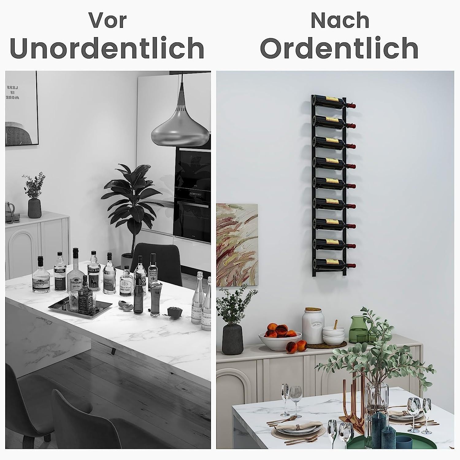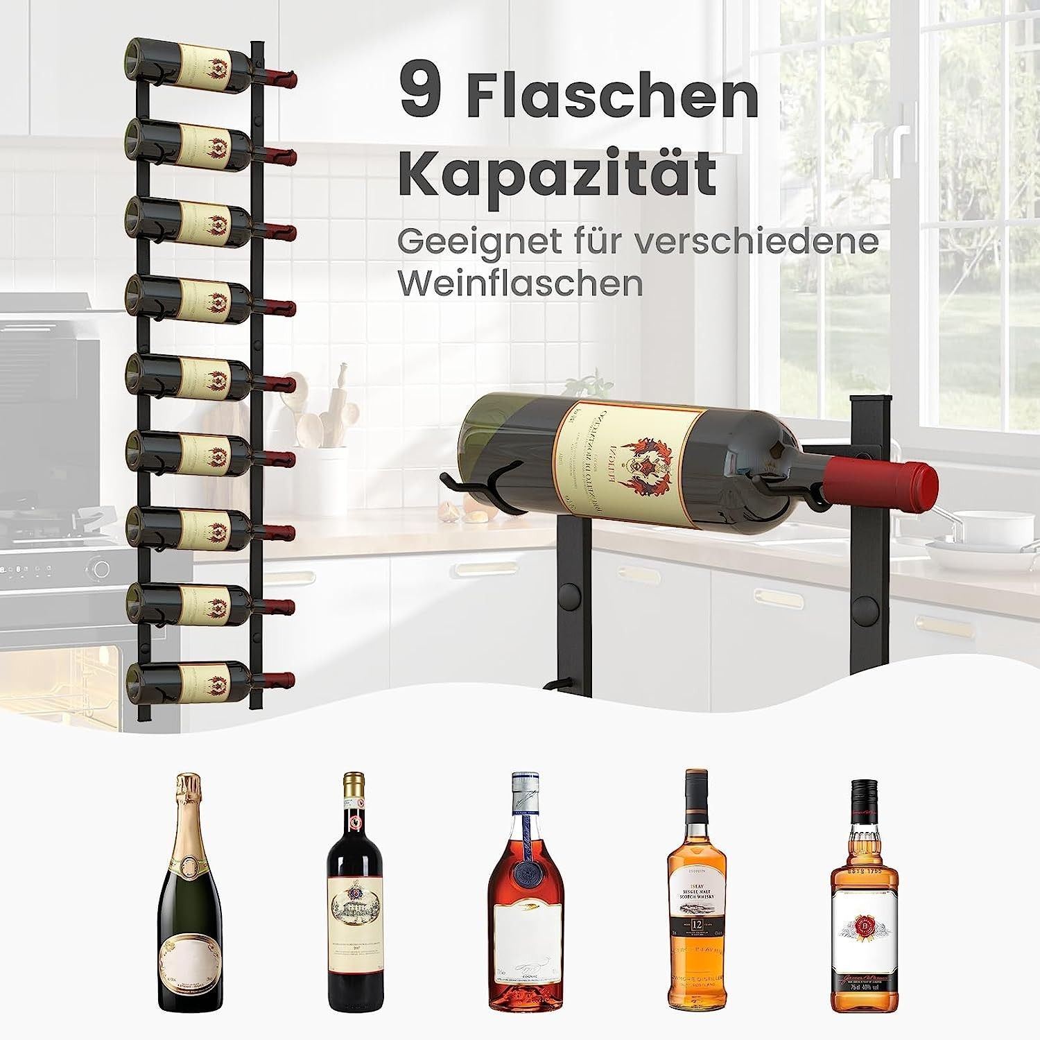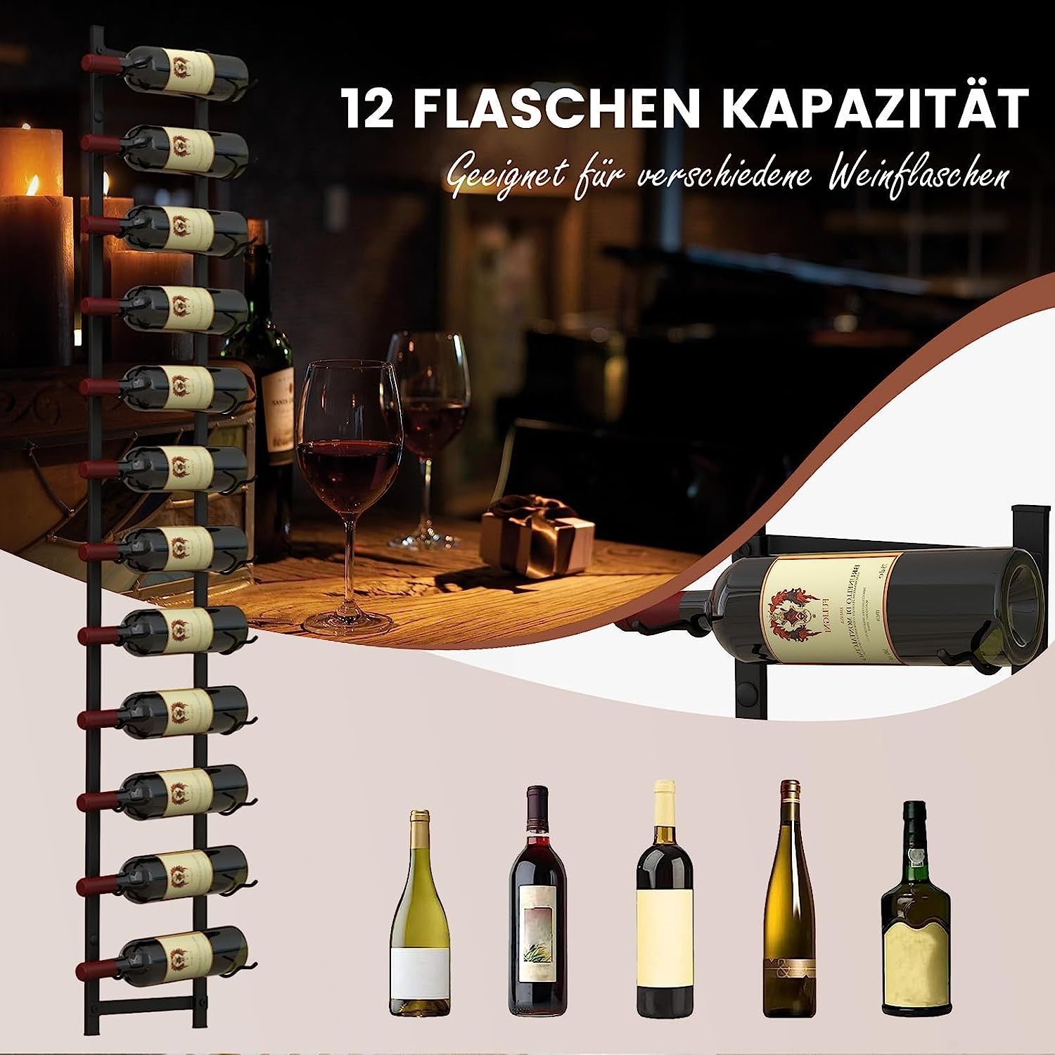 Weinregal Wand für 6/9/12 Weinflaschen, Flaschenhalter Metall, Flaschenregal