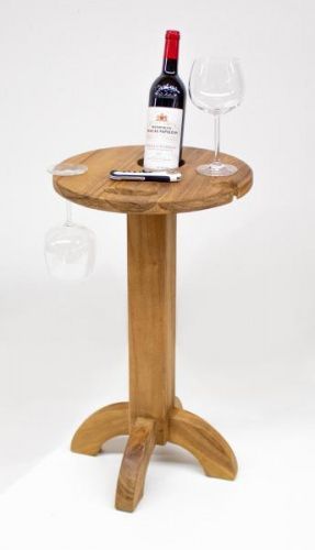 Weintisch aus Teak mit 2 Glashalter und 1 Flaschenhalter D. 38cm