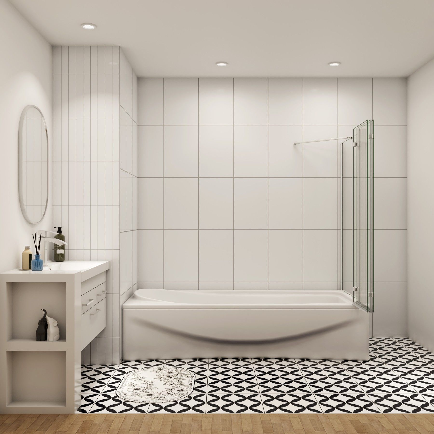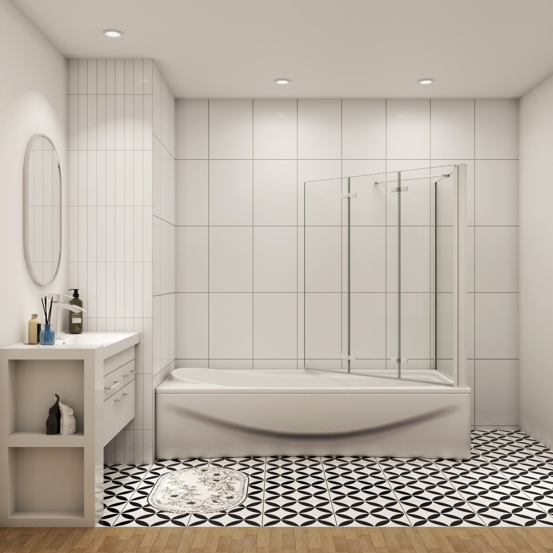 Weiß Badewanneaufsatz 130cm Faltwand mit 75cm Seitewand 6mm glas für Badewanne