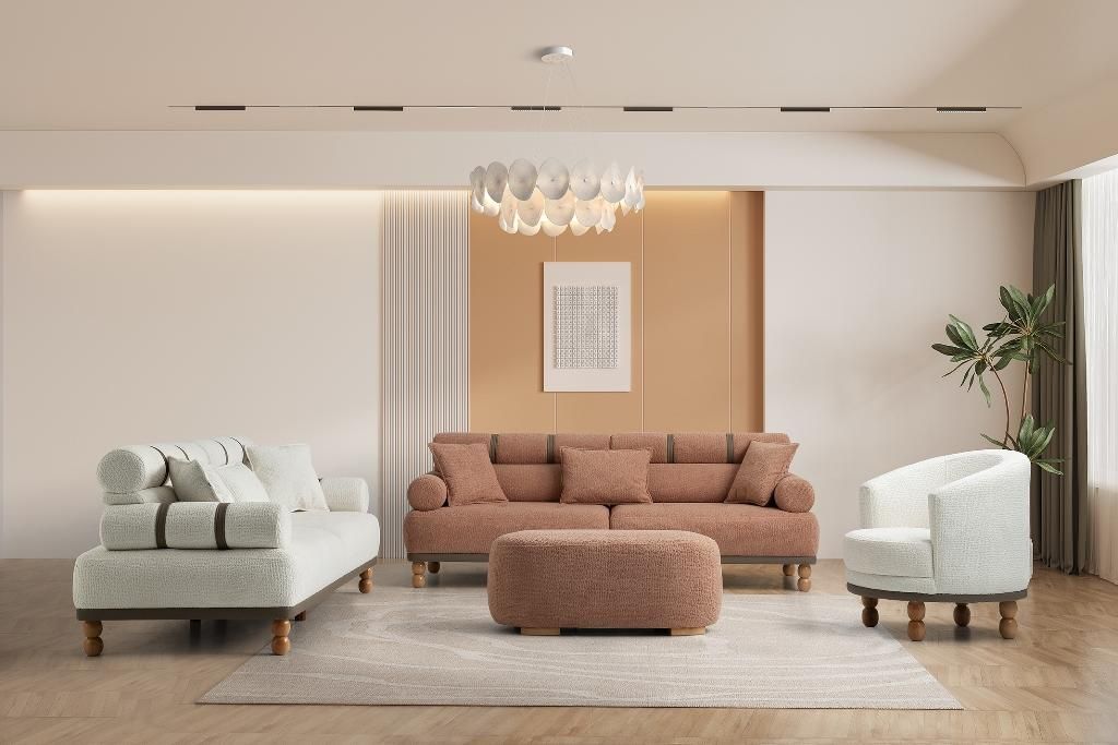Weiß-Beige Sofagarnitur Designer Polstermöbel Edle 3-Sitzer Sofas