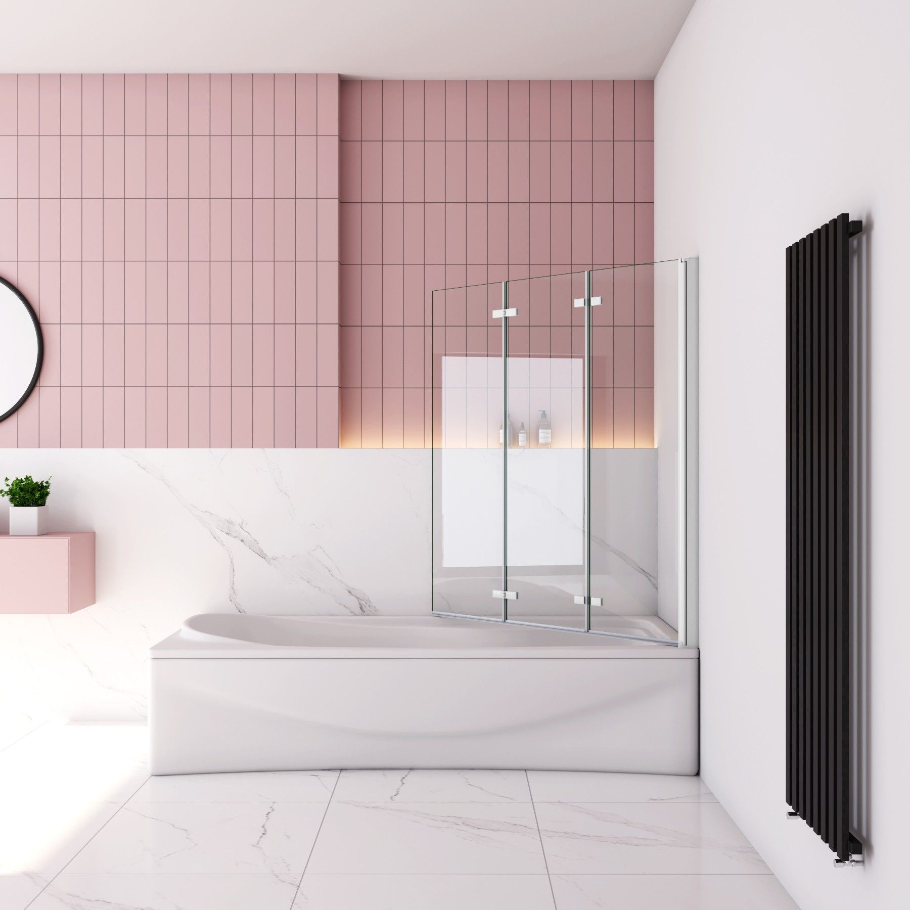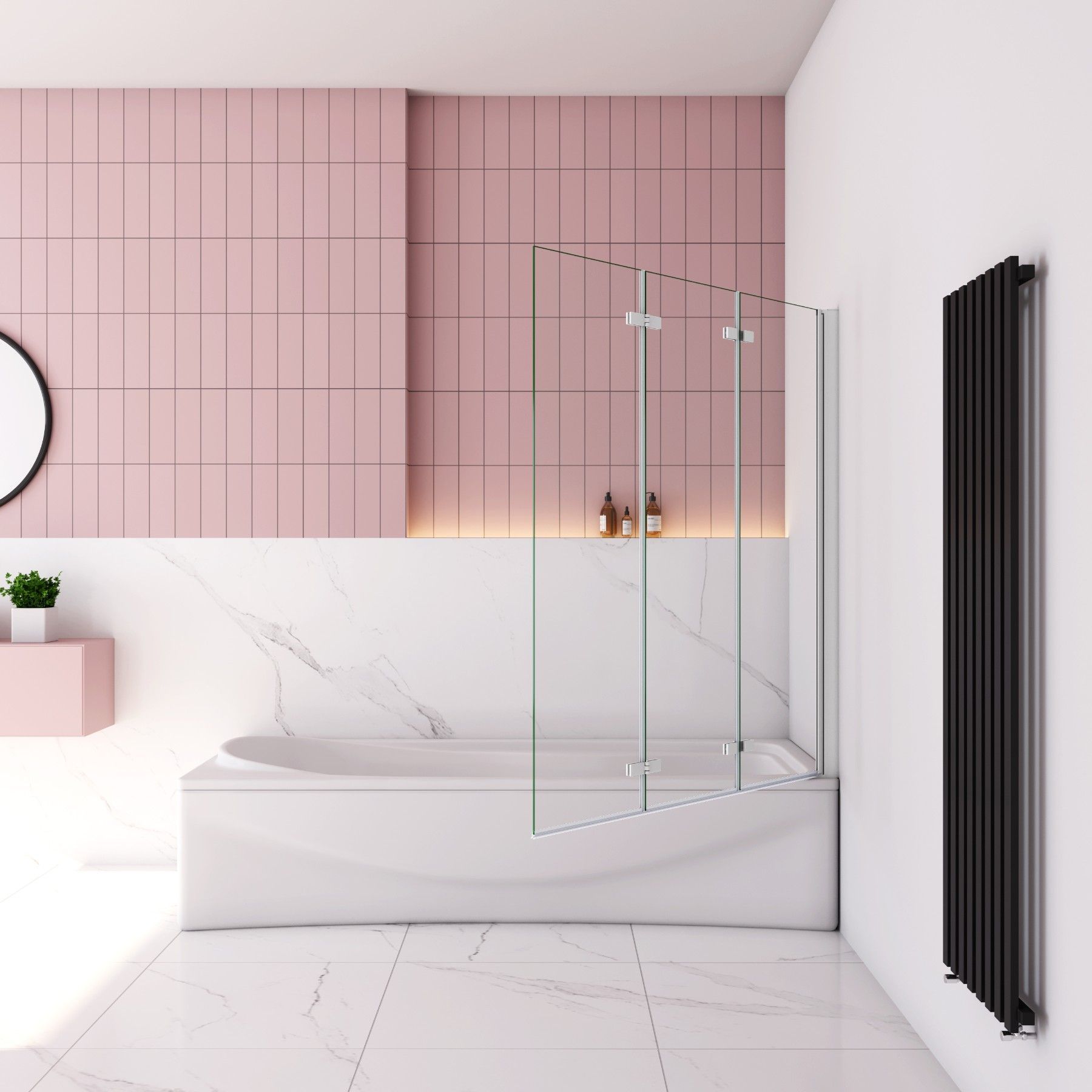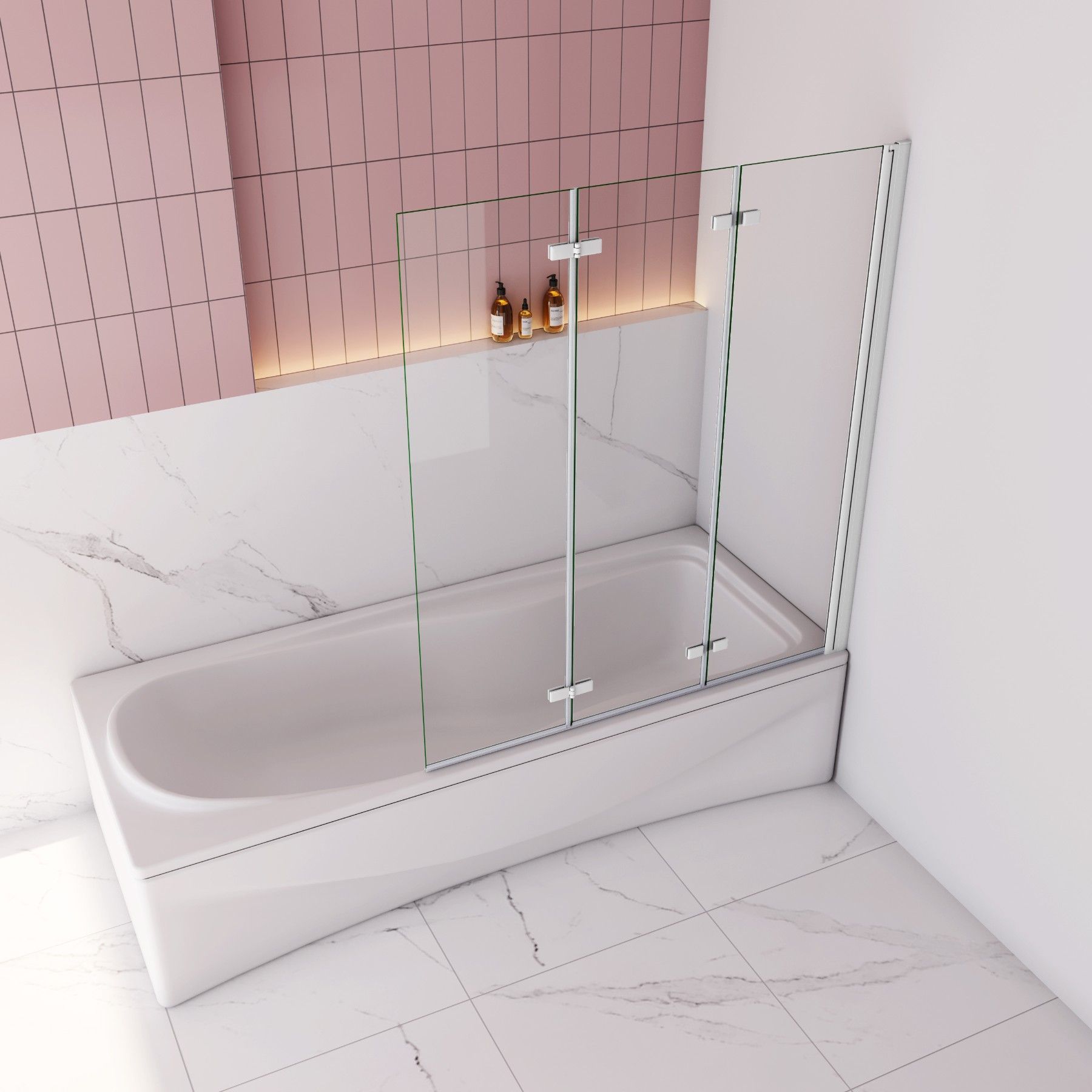 Weiß Faltwand 180° Drehbar 130x140cm Badewanneaufsatz für Badewanne 6mm ESG