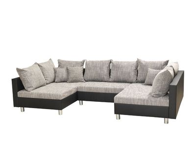 • Couchgarnitur Camilla U-Form Kuntleder Schwarz / Stoff Grau