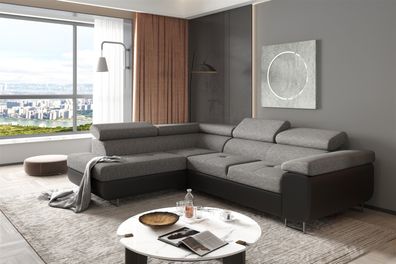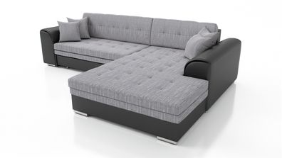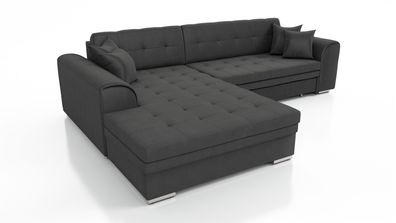 • Couchgarnitur NICOLE mit Schlaffunktion Ottomane Links Grau/ Schwarz