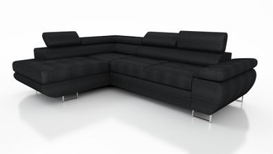 • Couchgarnitur ELON Stoff Schwarz mit Schlaffunktion Ottomane Links