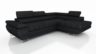 • Couchgarnitur ELON Stoff Schwarz mit Schlaffunktion Ottomane Rechts