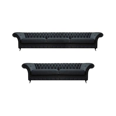 Edle Chesterfield Schwarze Couchgarnitur Polstermöbel Wohnzimmer Sofas