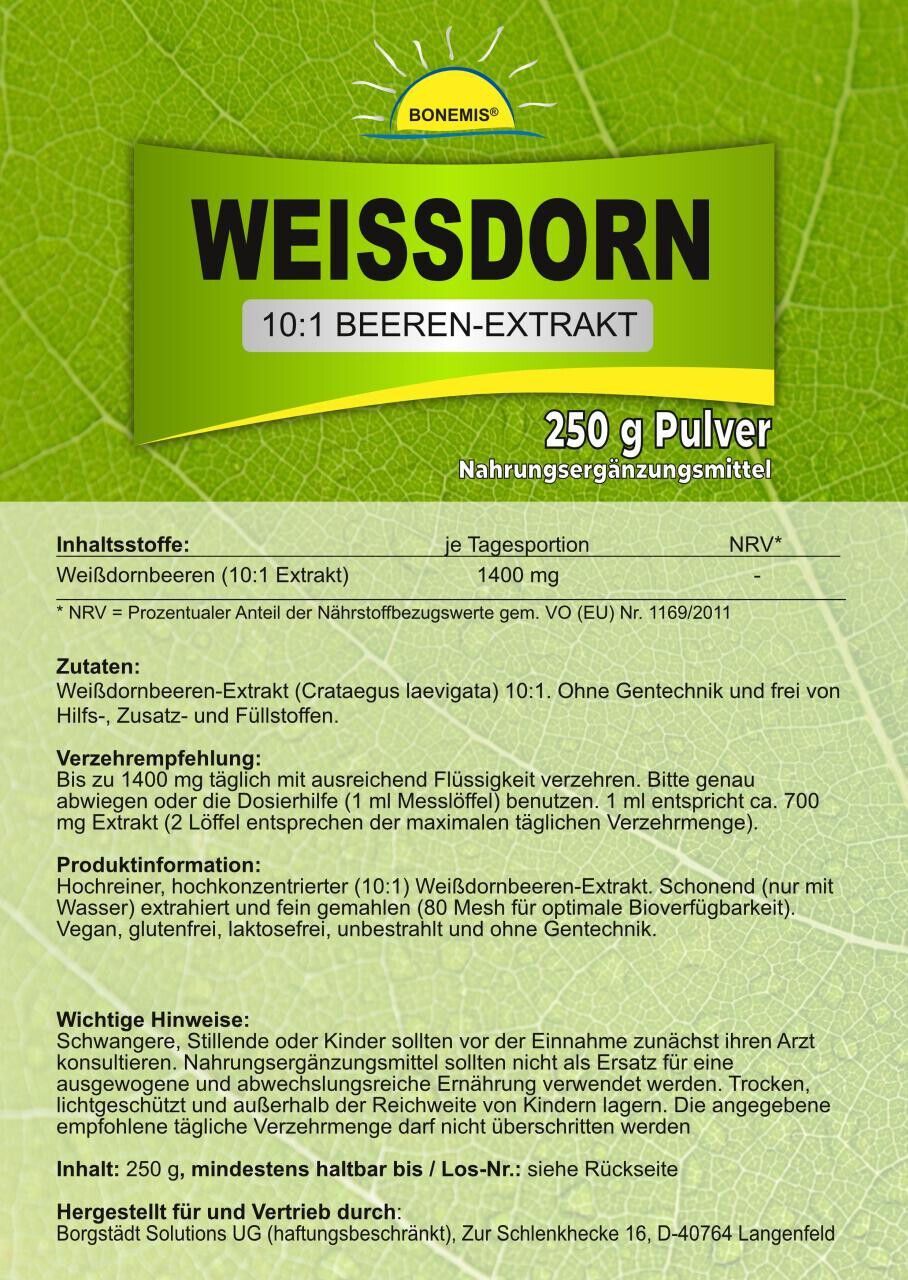 Weißdorn (10:1 Beeren-Extrakt), ohne Zusatzstoffe, 250 g Pulver, Bonemis®