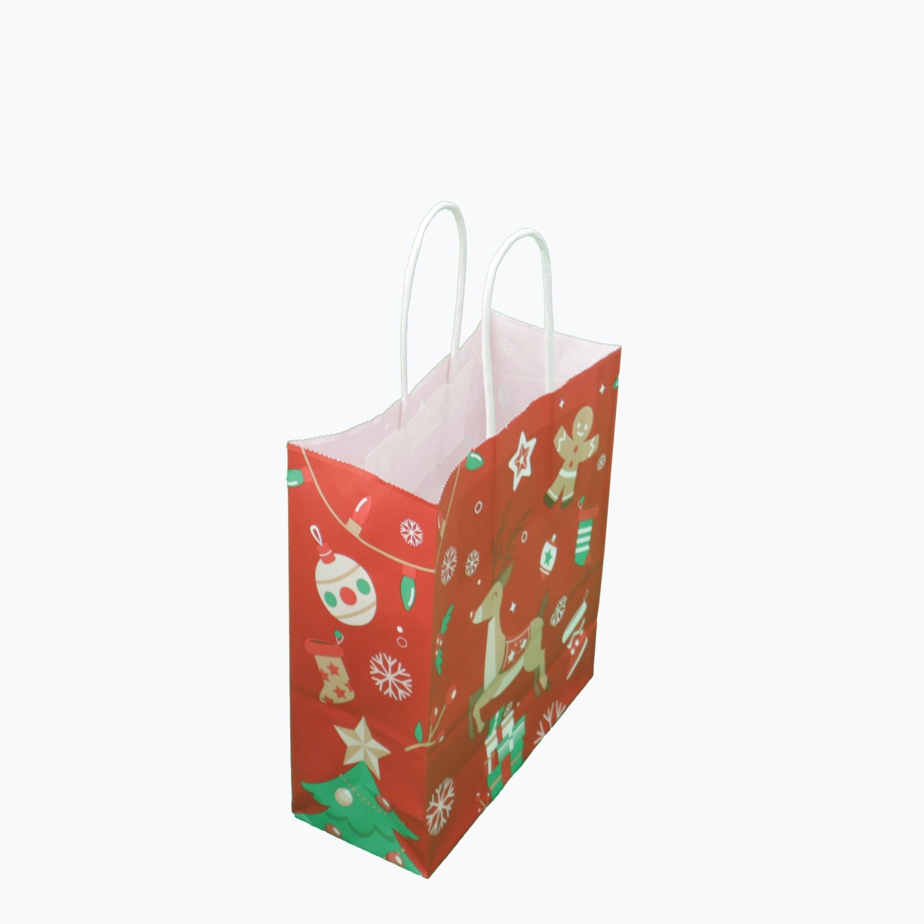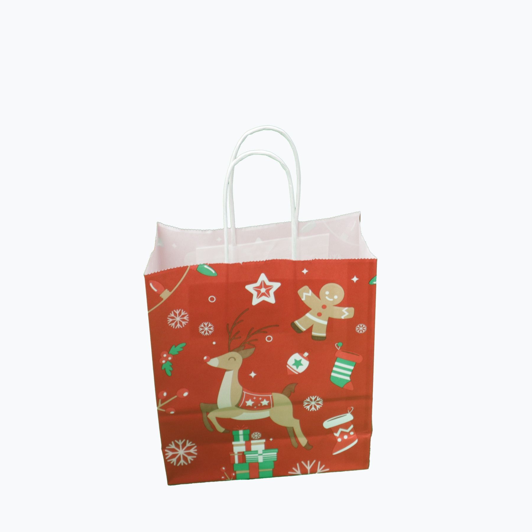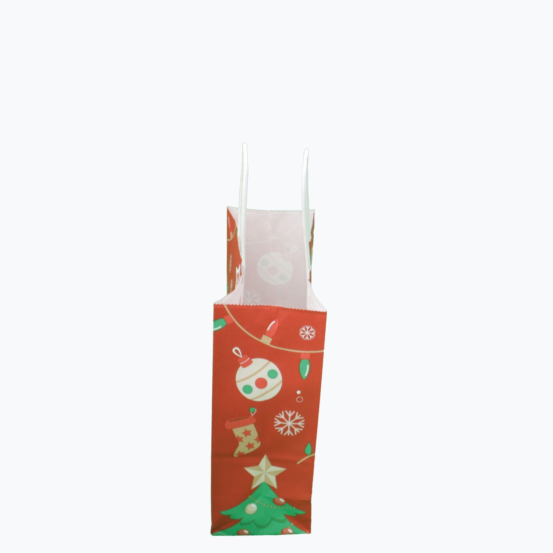 Weiße (18 + 8x22 cm) Papiertasche mit Papierkordeln bedruckt, 90g/ m², X-Mas