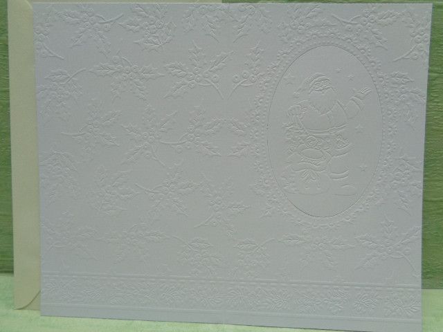 weiße geprägte Weihnachtsgrußkarten Kuvert Schneemann Weihnachtsmann .... EDEL