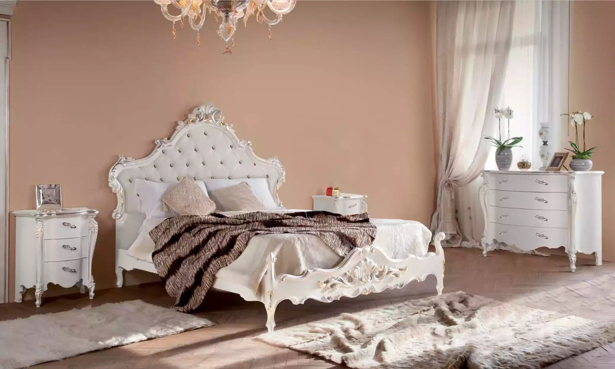Weiße Schlafzimmer Garnitur Bett 2x Nachttische Kommoden Holz Set 4tlg