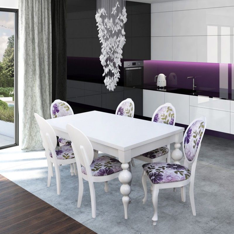 Ein Möbelset für das Esszimmer oder die Küche, das aus einem kratz- und rissfesten Holztisch und bequemen Stühlen besteht. Im Set enthalten sind 6 gepolsterte Stühle, die zusammen mit dem Tisch einen Ort für die täglichen Treffen bei einer Mahlzeit mit der Familie schaffen werden. Eine reiche Palette an Holzfarben steht zur Verfügung, so dass Sie die Farbgebung des Sets passend zu Ihrer Einrichtung wählen können.