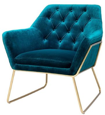 • Casa Padrino Luxus Lounge Samt Sessel Blau / Messing 75 x 78 x H. 82 cm - Retro Wohnz